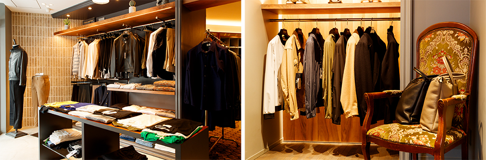 「カッコよくイキる、というのがコンセプトです。粋に活き活きと生き、イキる。この言葉に全部が詰まっています。ファッションには着る人の気分を上向きにし、新たなステージへと向かう背中を押す力があると思っていて、そのお手伝いができるような店でありたいと常々考えているんです。そして当店が提唱する「ネクストセレクトショップ」の意図ですが、セレクトと言いながらオリジナルばかりが並んでいたり、今ってセレクトショップの基準が曖昧ですよね。我々はしっかりとエディットしたものを集め、かつその次、具体的にはライフスタイル全般を含めて提案できる店を目指しています。まだ構想中ですが今後はクリーニング業もできればと検討していて、それはお客様からどこのクリーニング店が良いかと尋ねられることが多いのも影響しています。また、せっかく装うのなら装って出かけられる場所を提供したいと、ドレスアップして集まるイベントを開催することも。服を売った次の段階の提案も含め、お客様の声やスタッフのアイデアを取り入れながらライフスタイル全般をコーディネートしていきたいので、僕たちはライフスタイリストと名乗っているんですよ」