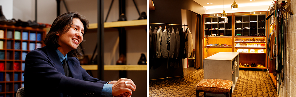 「接客業はお客様と対面して商品を提案する仕事です。そのため扱う商品に対する知識は必要ですが、正直なところ、知識は後からついてくる部分も多々あります。それ以上に、お客さまにとってどれだけ楽しい時間を作れるかが大事。オーダーの場合はどんなシーンで着用するのかといったライフスタイル込みでのご提案をするため、服以外の話をすることもあります。なので話題の引き出しを多く持つことも意識していますね。実は僕はとても人見知りで、今も初めてのお客様を前にすると緊張します。けれどせっかく時間を使ってここに来てくださっているので、お客様の時間を無駄にせず楽しい時間だったと思ってもらえるよう、常に心掛けています。服が好きなのはもちろんですが、それ以上にお客様に楽しんでもらうこと。こういう姿勢も接客業にとっては欠かせないのではないでしょうか」