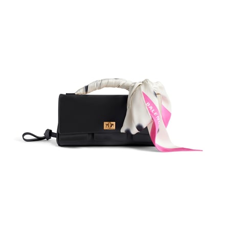 また、ネックウェアとして着用できるほかバッグのカスタマイズにも使用することができるシルクスカーフの先行販売も実施。スカーフは、2種類のストライプ柄とバレンシアガのアーカイヴテキスタイルにインスパイアされた色褪せたポルカドット柄1種類の計3種類を用意し、価格は各5万3900円(※予定価格)。