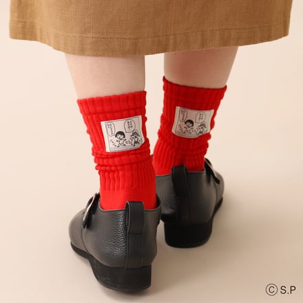ちびまる子ちゃんのアイテムは、まる子を刺繍したギンガムチェックのソックス(1760円)や原作マンガの一コマをネームタグとしてプリントしたアメリブソックス(1980円)、ちびまる子ちゃんのキャラクターとロゴを全体に散りばめた総柄デザインソックス(1650円)などを揃える。