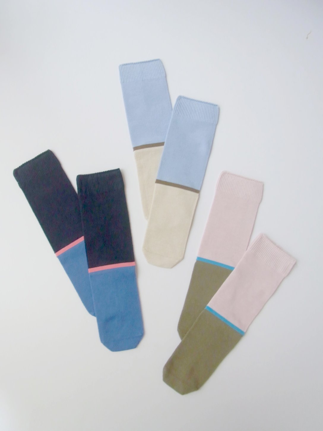 「Strap Border Socks」と「Plating rib Lame Socks」