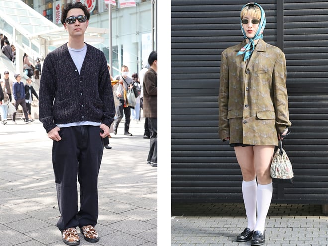(左)ソックスはyushokobayashiのもの。「無地のソックスとかだったら無難になっちゃうけどこれならアクセントになる」という26歳の女性(https://www.web-across.com/observe/ppce54000001sgvo.html)。(右)「Gardenの店員さんを見てレッグウォーマーを買いました」という23歳の男性(https://www.web-across.com/observe/ppce54000001sga6.html)。