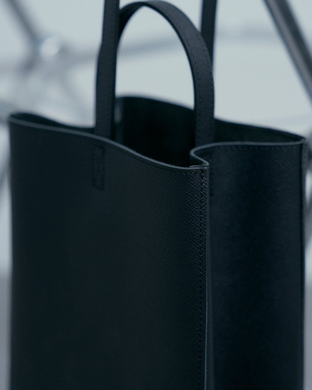 本コラボレーションに際し誕生した新型である「Regi」は、余計な装飾を排除したミニマルなレジ袋のデザイン。少し長めのハンドルはそのまま持つのはもちろん、片方を通してワンハンドルのバッグとしても活用でき、スタイリングに合わせた持ち方を楽しめます。シンプルに構成されたハンドバッグは、トレンドや時代に左右されずタイムレスに活躍すること間違いなし。素材には、シボ感が強い肉厚なレザーを採用。しなやかなタッチでキズがつきにくく、またシボのおかげでキズが目立ちにくいという利点があり、日常使いに最適な仕上がりです。