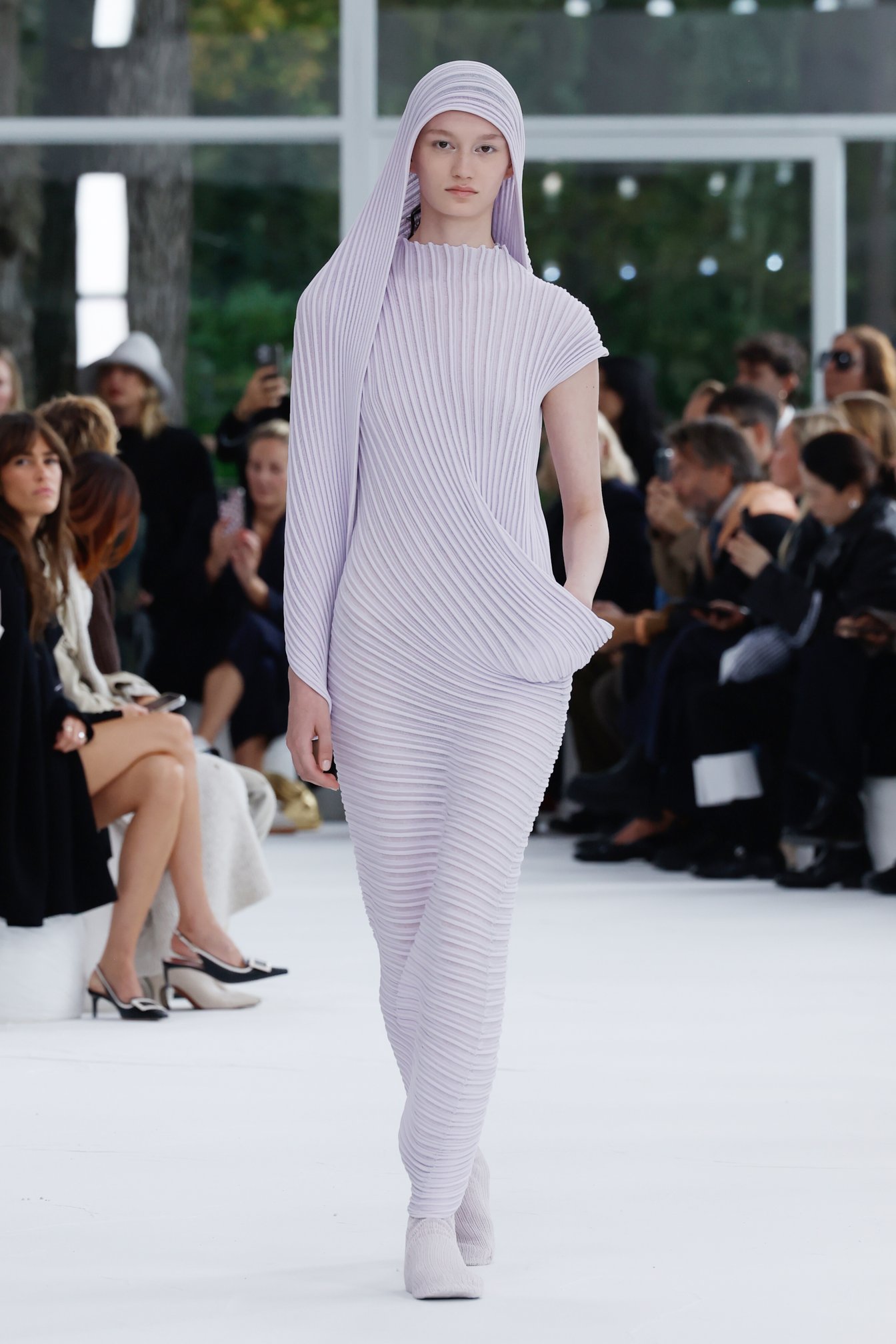 9月27日、デザイナー近藤悟史が率いる「イッセイ ミヤケ(ISSEY MIYAKE)」は、パリ花公園(Parc floral de Paris)にあるパビリオンで、2025年春夏コレクションを発表した。