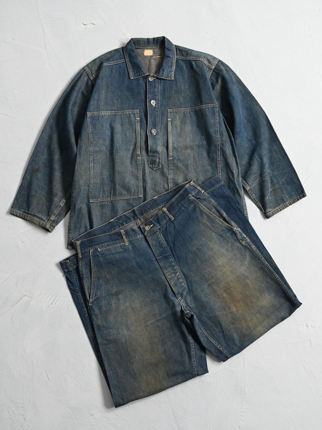 The Holic:ディテールから1940年代頃のForemost製と判断できるデニムパンツ。剥き出しリベットなど、ヴィンテージらしいディテールとリペアの雰囲気が抜群です。