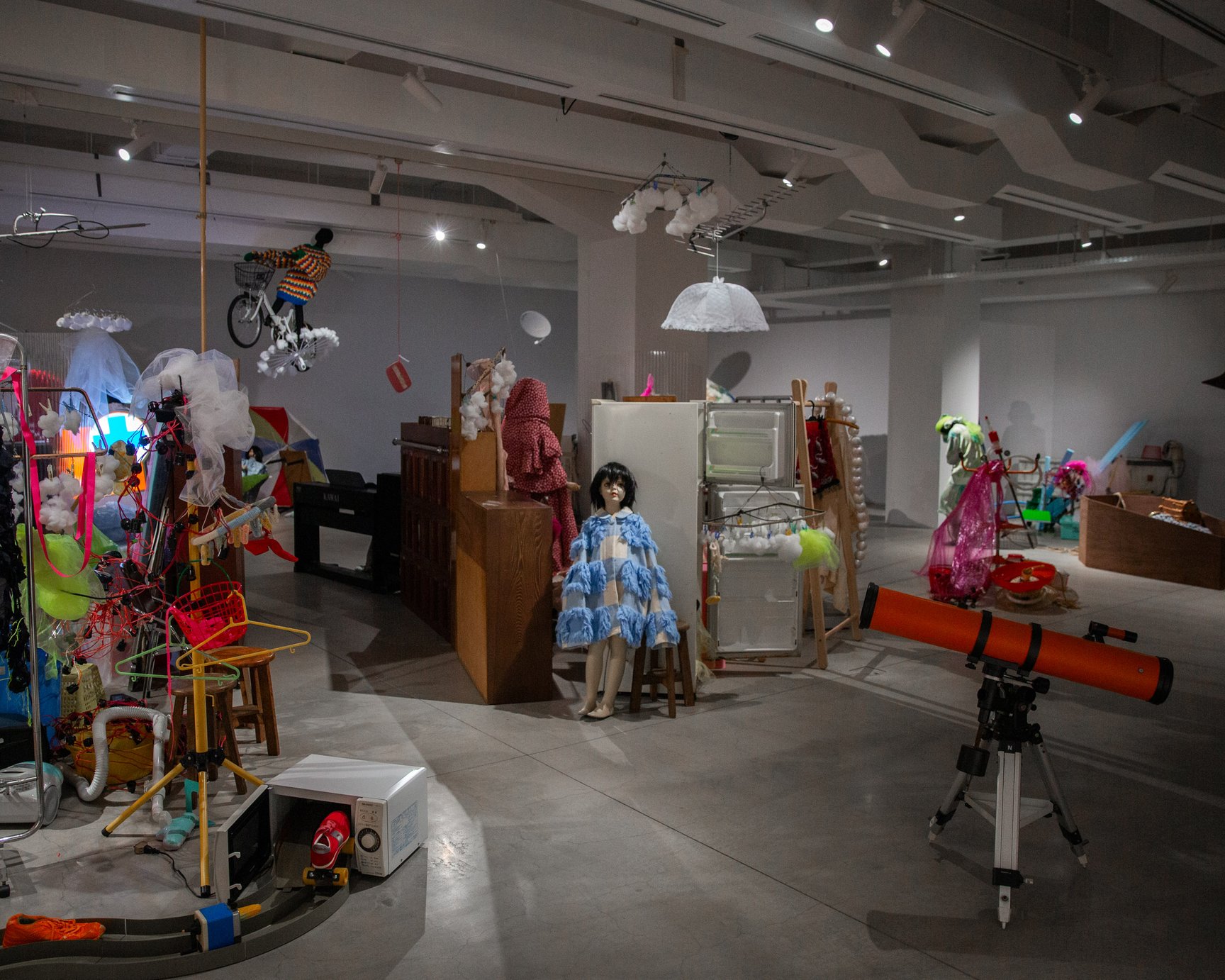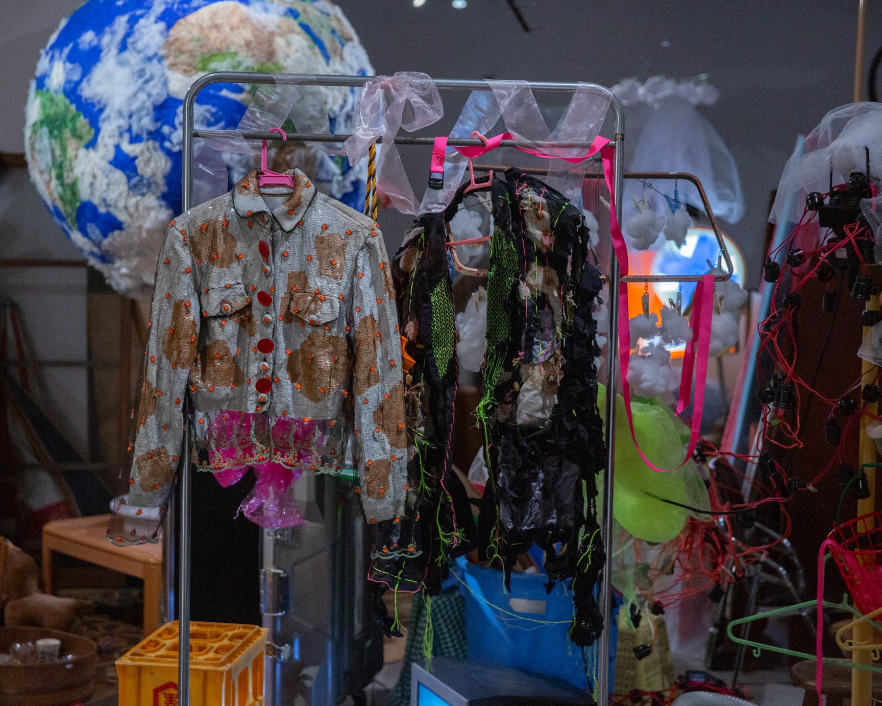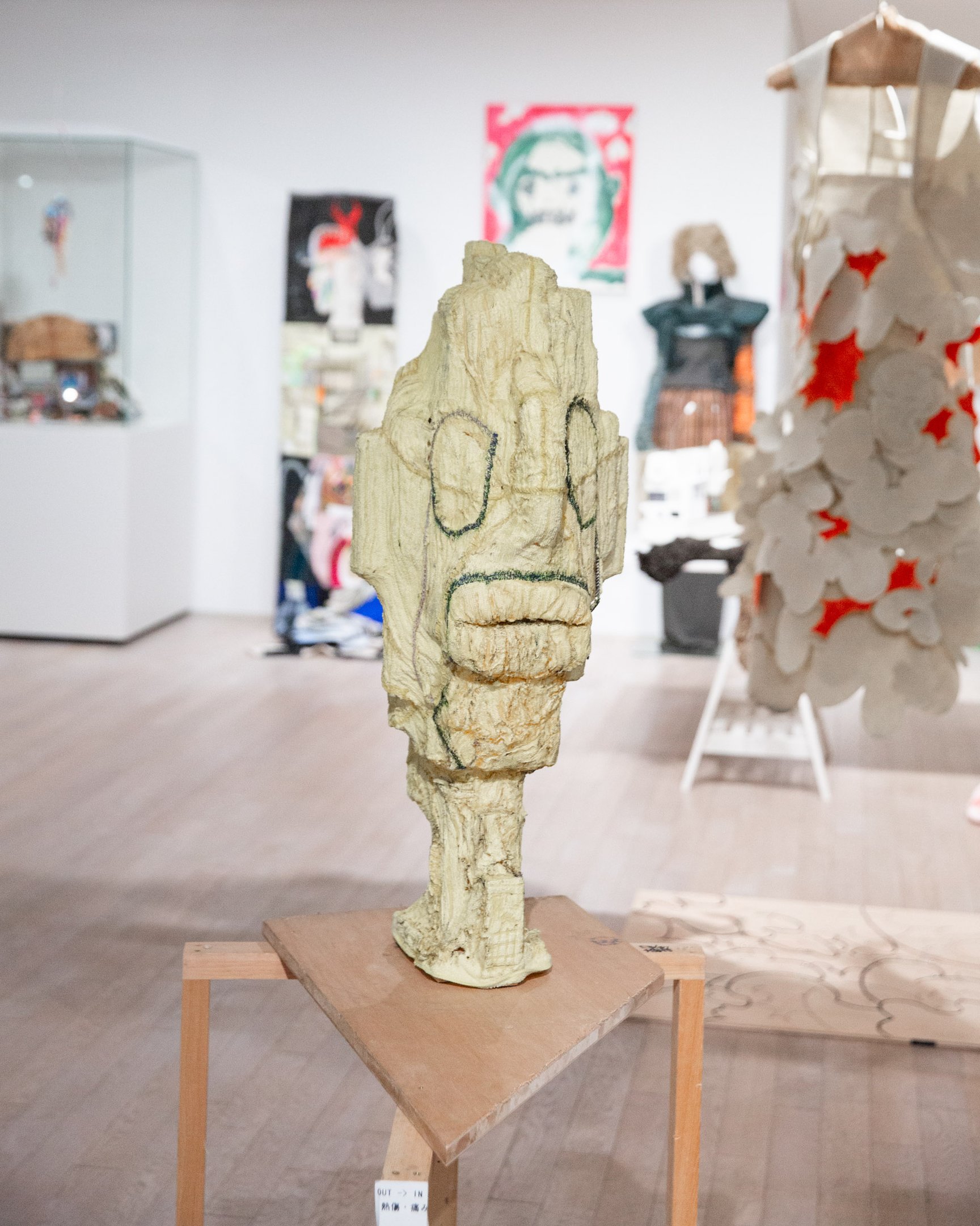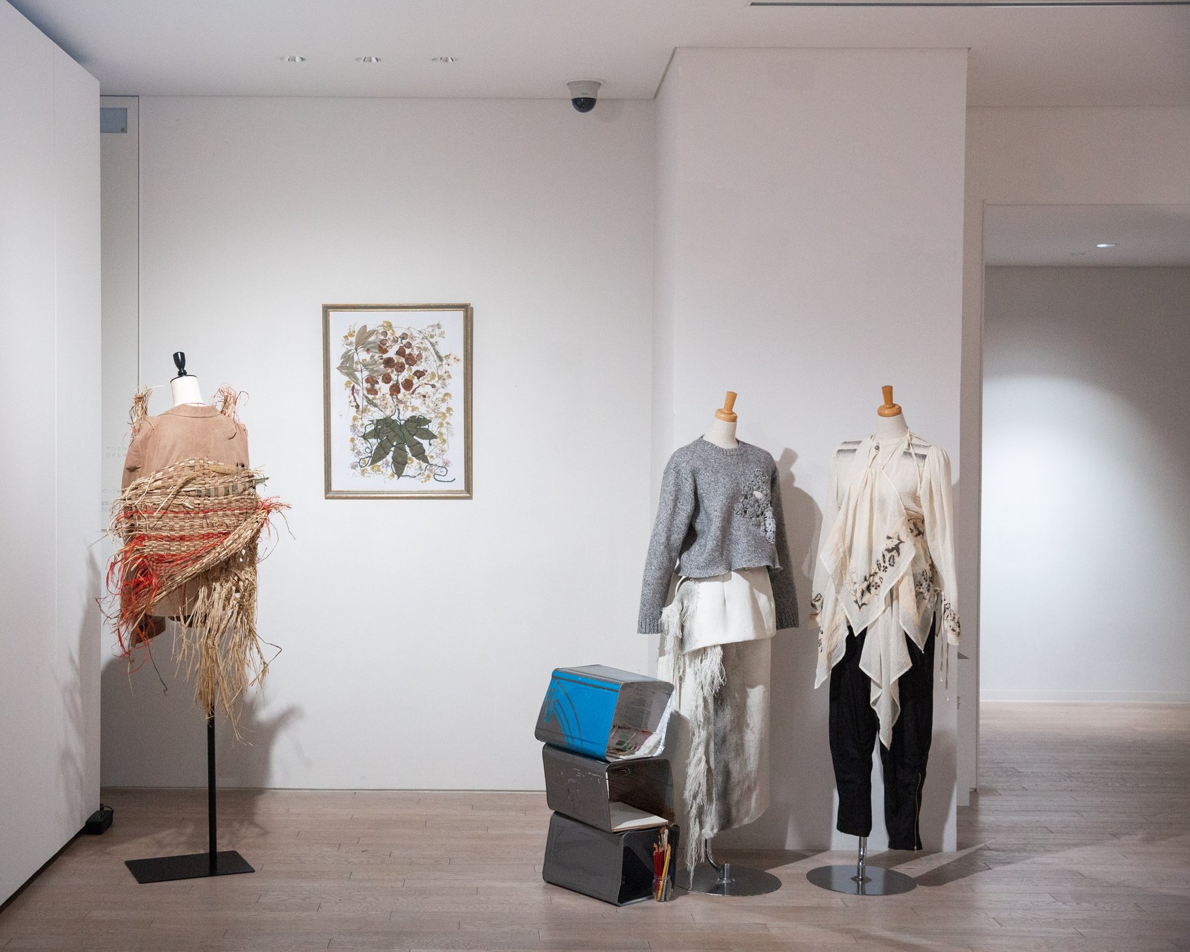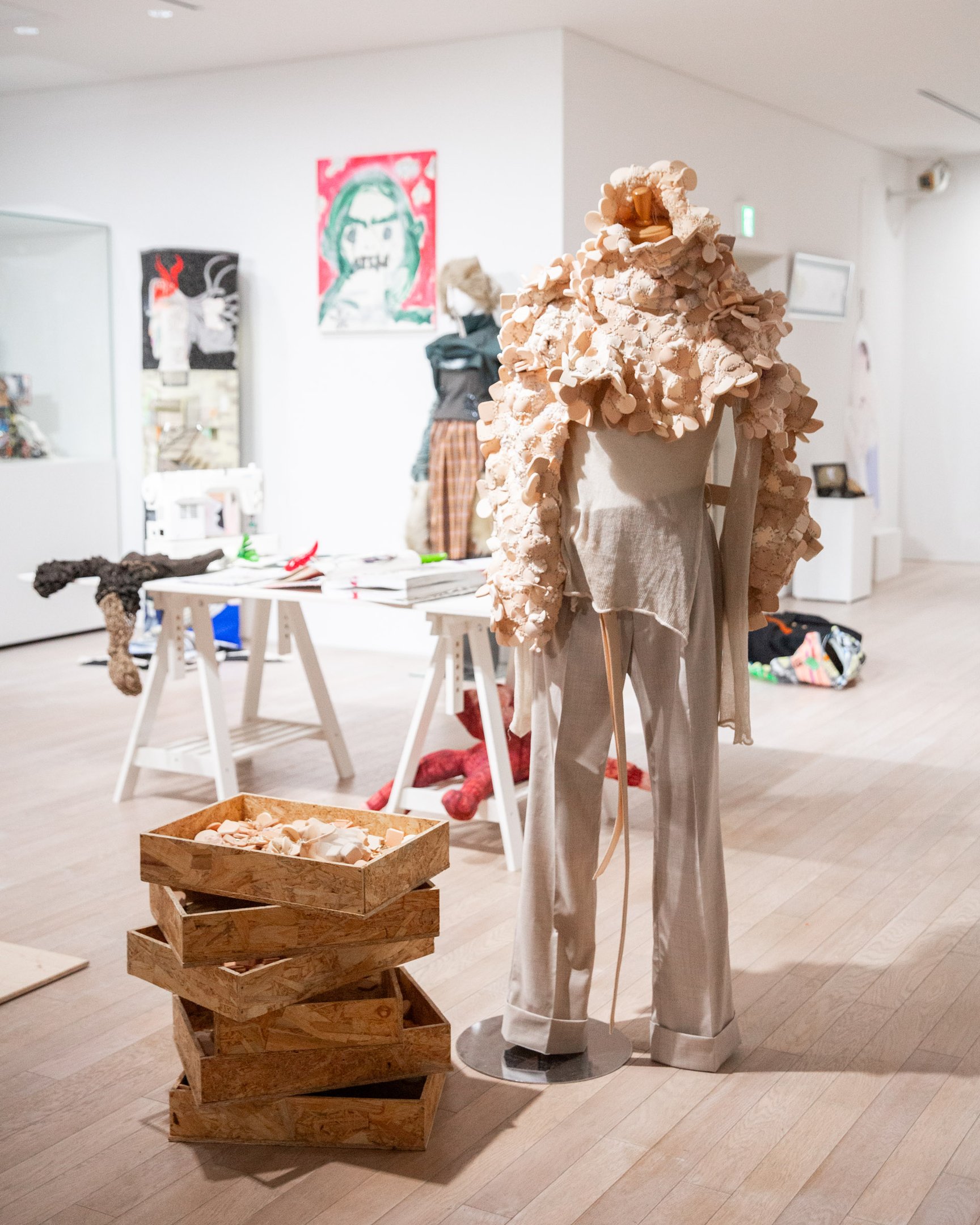 非日常の空間(美術館)に、日常(どこかの誰かの生活の痕跡を残す家具)を持ち込み、そこに非日常(人間を超越したテーマで生み出された山縣の作品たち)を介入させることで、同氏が捉える2024年の日本の「日常」を描き出す。変容する日常と題されたこの章は、同展において、アーツ前橋を「リトゥンアフターワーズの考えるファッションのための家(メゾン*)」にする取り組みでもある。