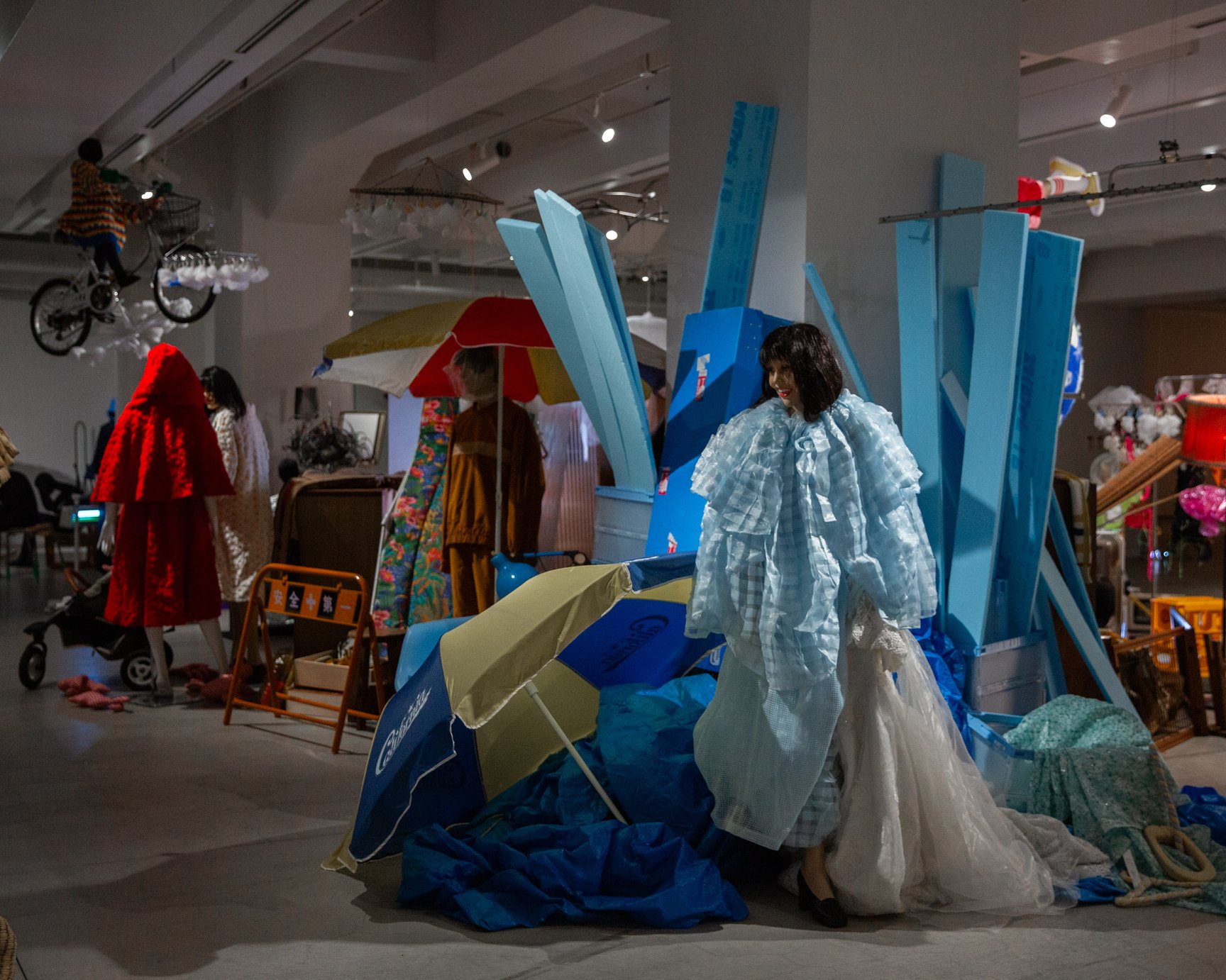 「国内では年始に能登半島沖地震が発生し、ガザやウクライナの侵攻は止まることがない、そんな中で“ファッションの展覧会”をどう発表するべきなのか」。地震では、一瞬で家が倒壊する。東日本大震災が発生した2011年に仙台でアートプロジェクトに関わっていた同展のキュレーターが体験した、「美術館が一夜にして避難所になった」という出来事もこの展示に影響を与えている。「我々が日々『日常』だと信じている生活はとても不安定なもので、いつ崩れるかわからない。もしかすると、『非日常』の上にかろうじて存在しているものなのではないか」と山縣。