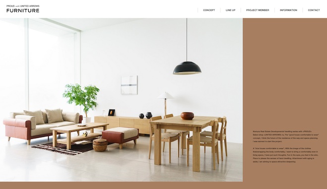 PROUD with UNITED ARROWS FURNITURE 公式サイトトップページより