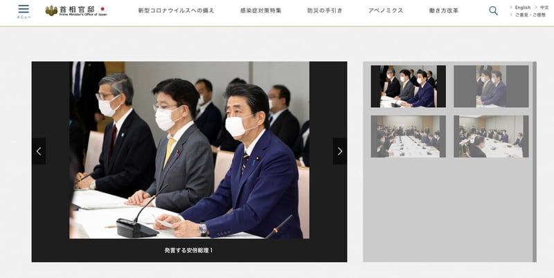 首相官邸ホームページ 感染症対策本部ページより