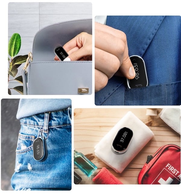 本体ボタンをスライドさせてUSB Type Cコネクタを出し、スマートフォンやタブレットなどに接続すると電源が入る仕組みでアプリのインストールやダウンロードは不要。検温後はデバイスに大きな文字で体温が表示される。非常にシンプルな操作性なので、子どもから高齢の方まで誰にとっても使いやすいデザインになっているのではないだろうか。