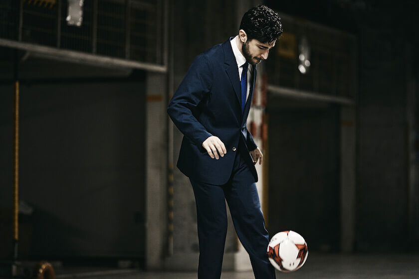 「アンディショナルスーツ」 は、ビジネスシーンにふさわしいスタイリッシュな見た目でありながら、そのままサッカーもできてしまうほど動きやすくアクティブで快適なスーツ。ジャケットは、身頃脇から袖にかけて1枚の生地にすることで腕を回した時の引っ掛かりを軽減し快適さを体現。横4WAYストレッチで、シワになりにくい素材を使用している。パンツには、スポーツウエアに用いる膝を曲げやすく動きやすいパターンを採用し、身体のかたちに合わせた立体的なパターンにすることで自由な動きを可能にした。パンツは自宅で洗濯することができる。カラーはグレーとネイビーの2色展開で、価格はセットで3万6,300円(税込)、ジャケットは2万5,300円(税抜)、パンツは1万1,000円(税抜)。