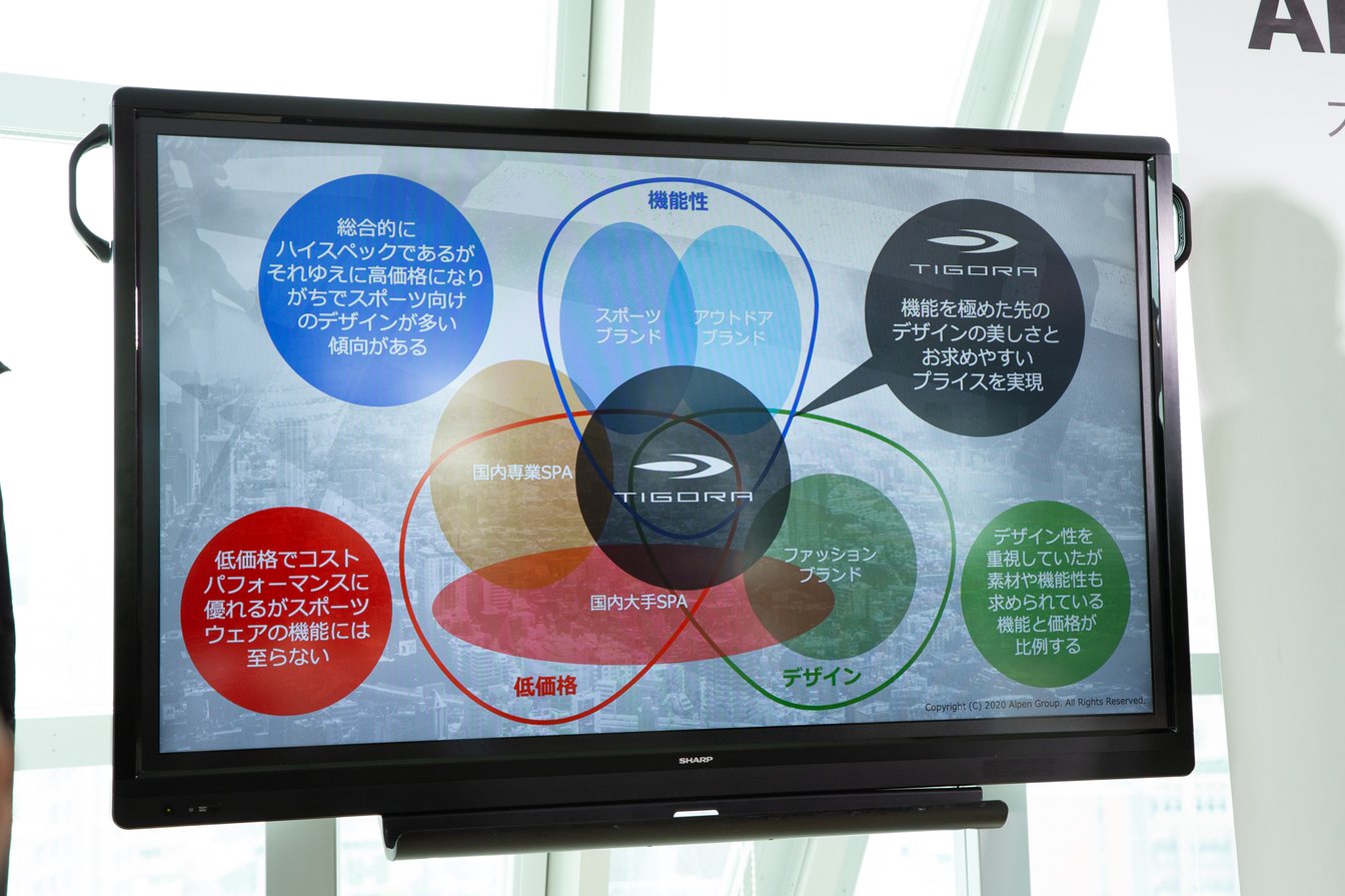 ティゴラの2015年6月期の売上は100億円程度だったが、スポーツウェアを日常着に落とし込むアスレジャースタイルの流行などの影響で2020年6月期は150億円を達成。アルペンは、新型コロナウイルス感染拡大に伴うテレワークの普及などにより、これまで以上に機能的で快適なアパレルの需要が拡大すると予想し、更なる事業成長に向けてリブランディングを決めた。