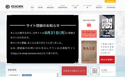 なお、レナウンの民事再生手続の決定後は、レナウンの直営工場を運営していたダーバン宮崎ソーイングや、婦人服の製品製造や外注加工などを手掛けていた下請けのローゼが連鎖倒産。完全子会社のレナウンインクスについては、全株式をストッキングやタイツを展開するアツギと譲渡契約を締結した。