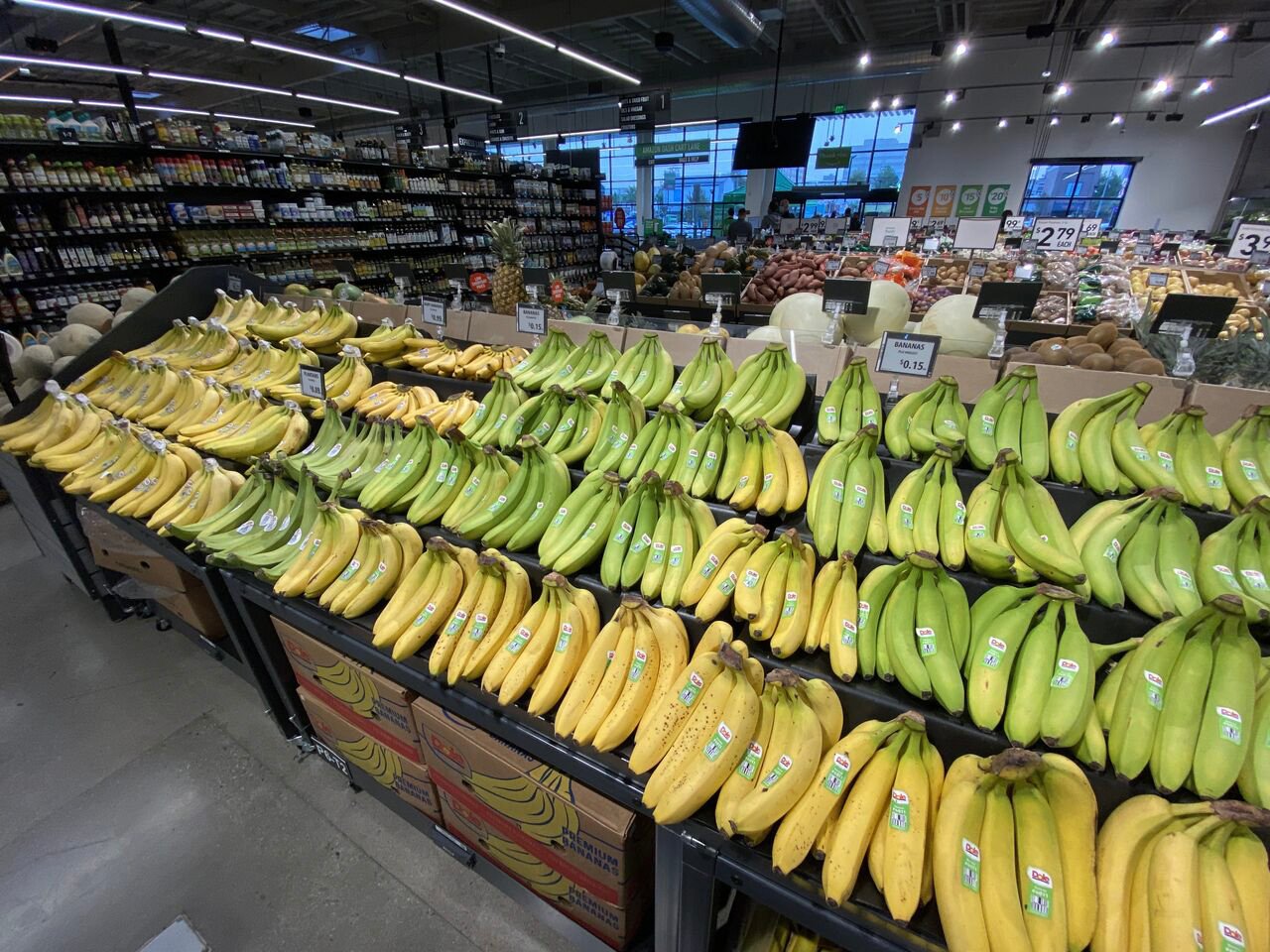 青果コーナーの奥にある定番のドール・バナナは1本15セントで訴求。プライスタグはデジタルタグを使用しており、最新版デジタルタグにより視認性も高い。後藤はバナナ6本購入して90セントだった。