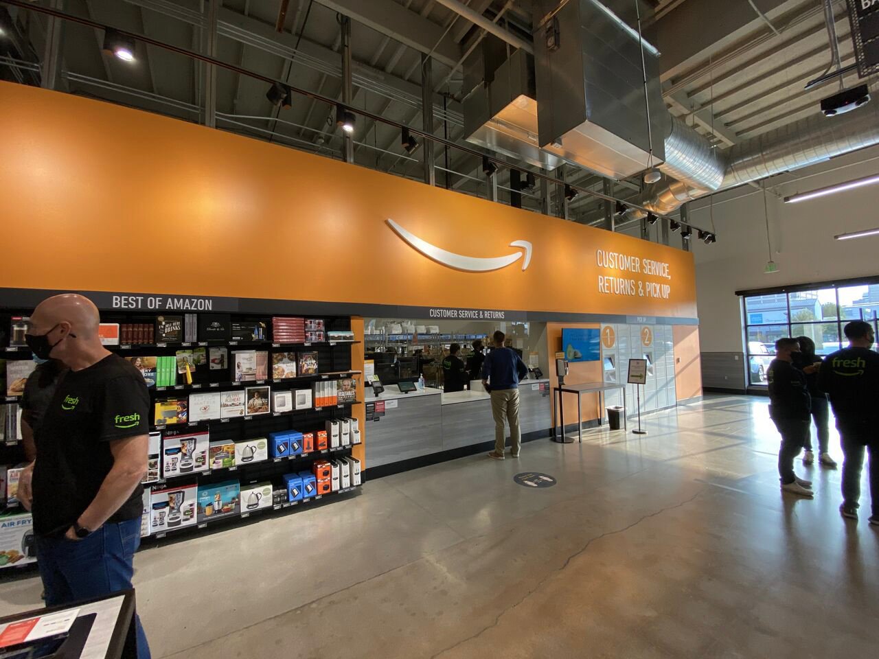しかし最も異なるのは入り口から右奥にあるシームレスなオムニチャネル化を実現する受付カウンター「カスタマー・サービス返品&受け取り(Customer Service Returns & Pickup)」とアマゾン・ロッカーだ。