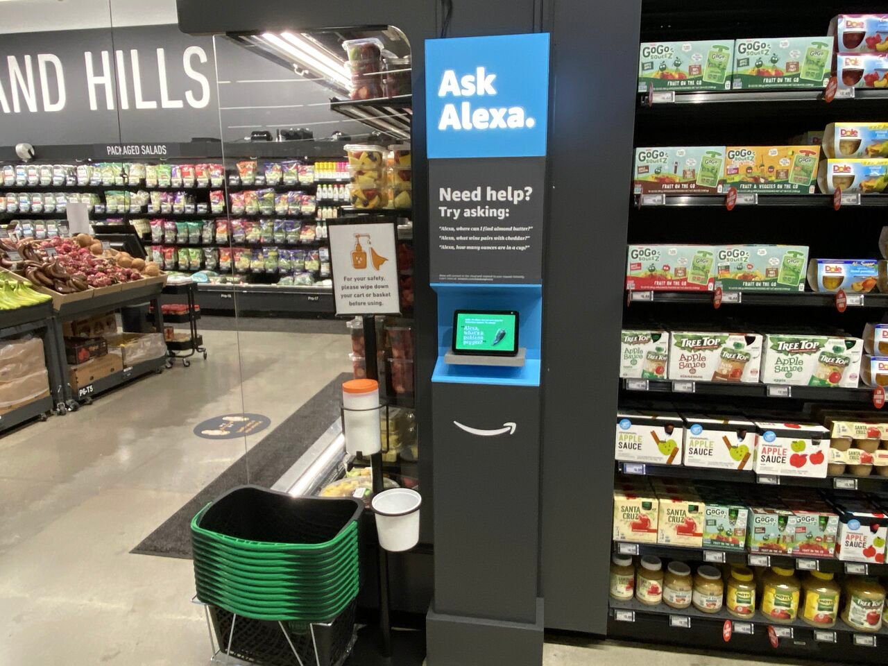 また売り場の4ヶ所にキオスク端末としてスマート・スピーカーの「アマゾン・エコー・ショー(Alexa Echo Show)」を設置。顧客が売り場を探す時に音声でアレクサに尋ねることが可能となっているのだ。
