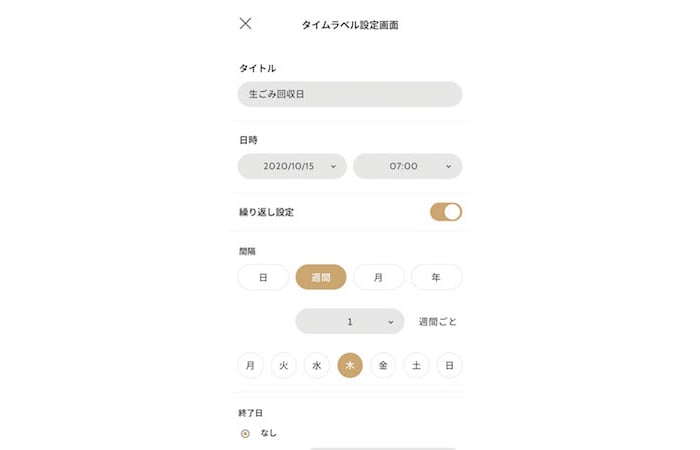 また、印刷したラベルに予定を紐づけ、スマートフォンのプッシュ通知でお知らせができる「タイムラベル」は、ゴミ出し日や浄水器のフィルター交換時期などの管理に便利だ。