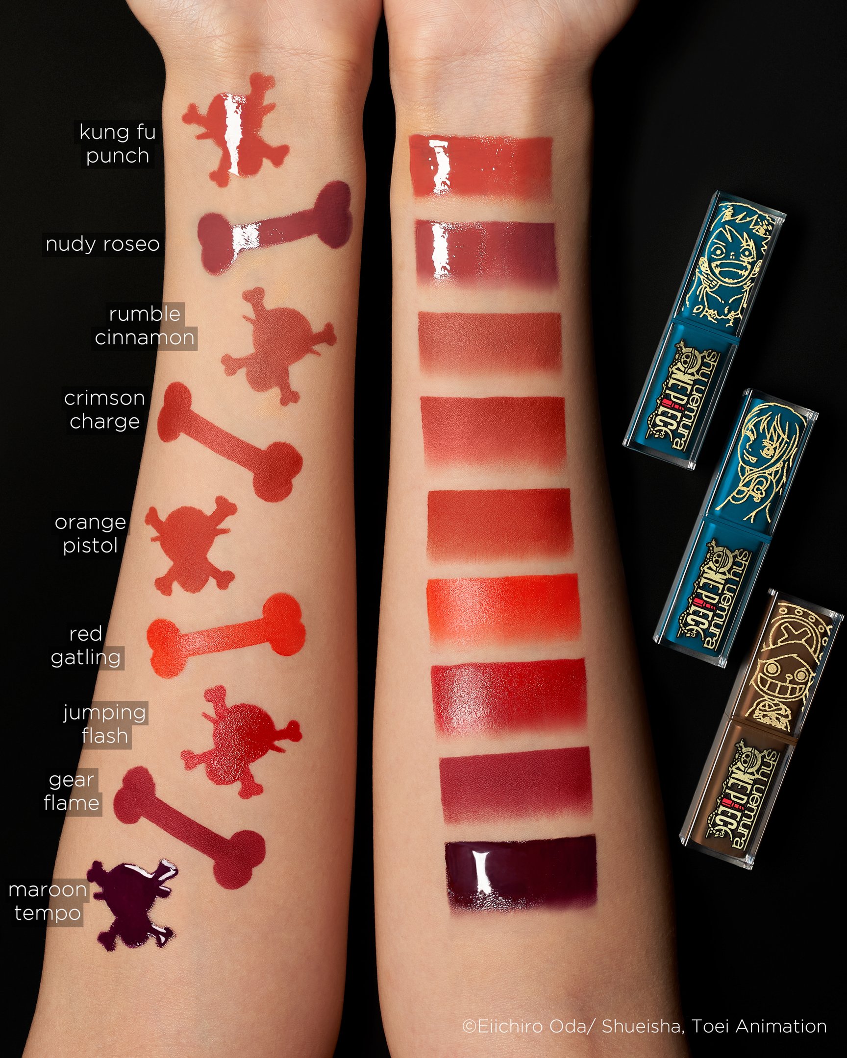 11月1日発売の第1弾では、ルフィ、ナミ、チョッパーの戦いから着想したリップ「ルージュ アンリミテッド」(全3種・計9色、各3300円)、アイパレット「ウォンテッド トレジャーボックス アイパレット」(全2種、各8500円)、クレンジングオイル「アルティム8∞ スブリム ビューティ クレンジング オイル」の限定パッケージ(150ml 4600円、450ml 1万1500円)を用意。アイパレットは既存色と限定色を組み合わせた10色セットで、シックな色調の「グランドライン」と、ウォームカラーを中心にセレクトした「サウザンド・サニー」が揃う。