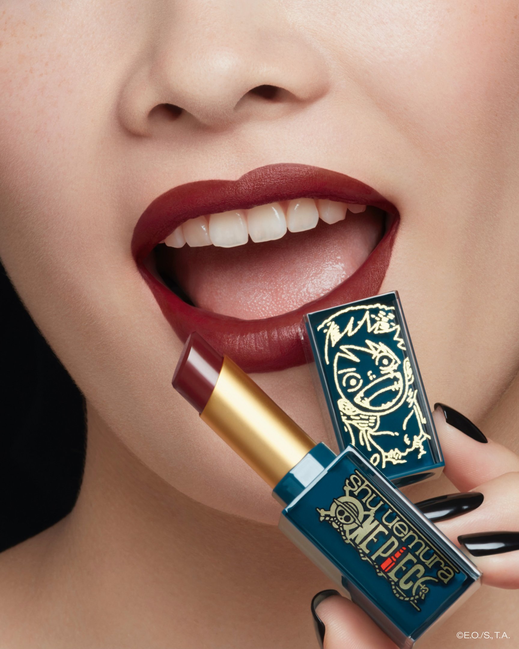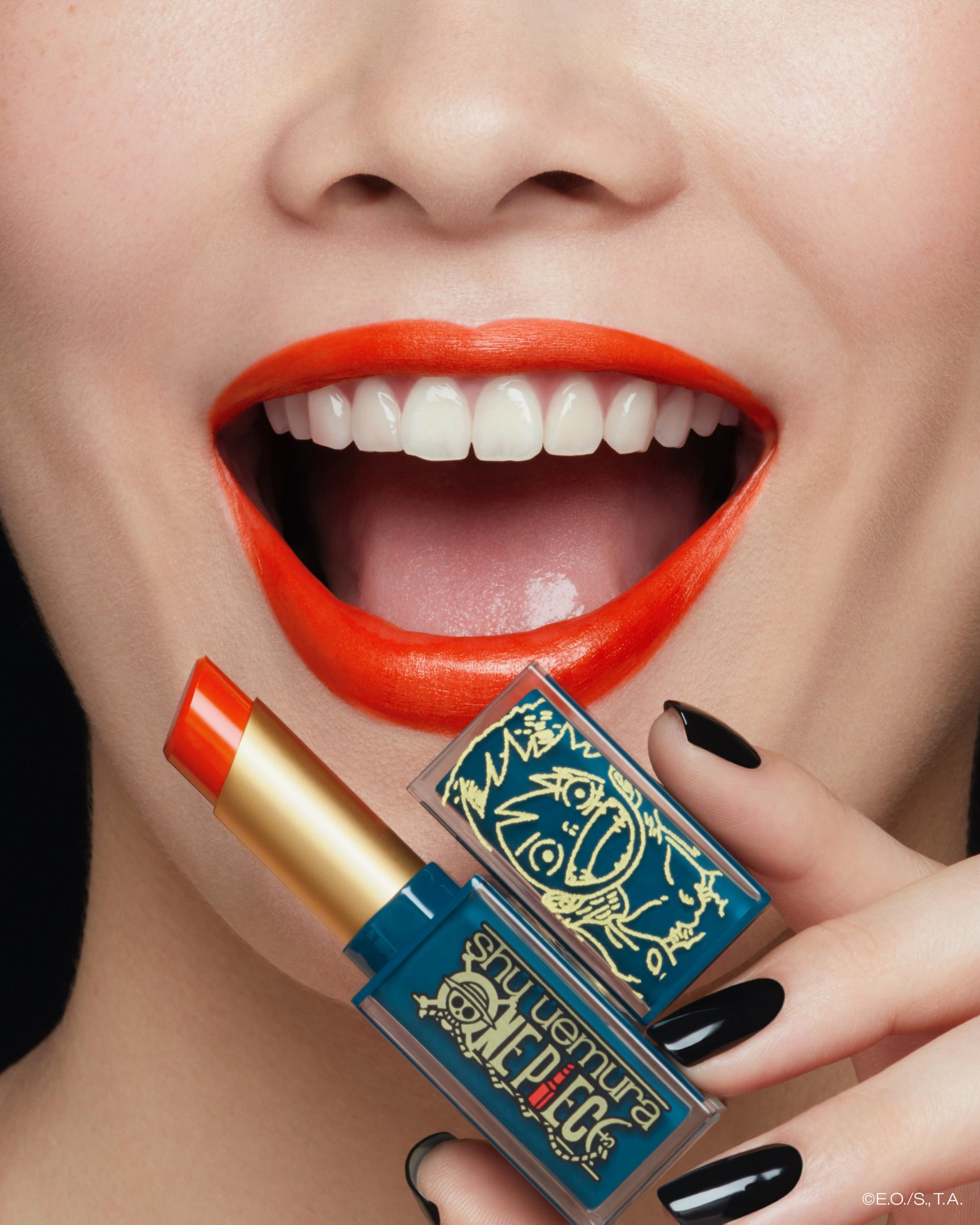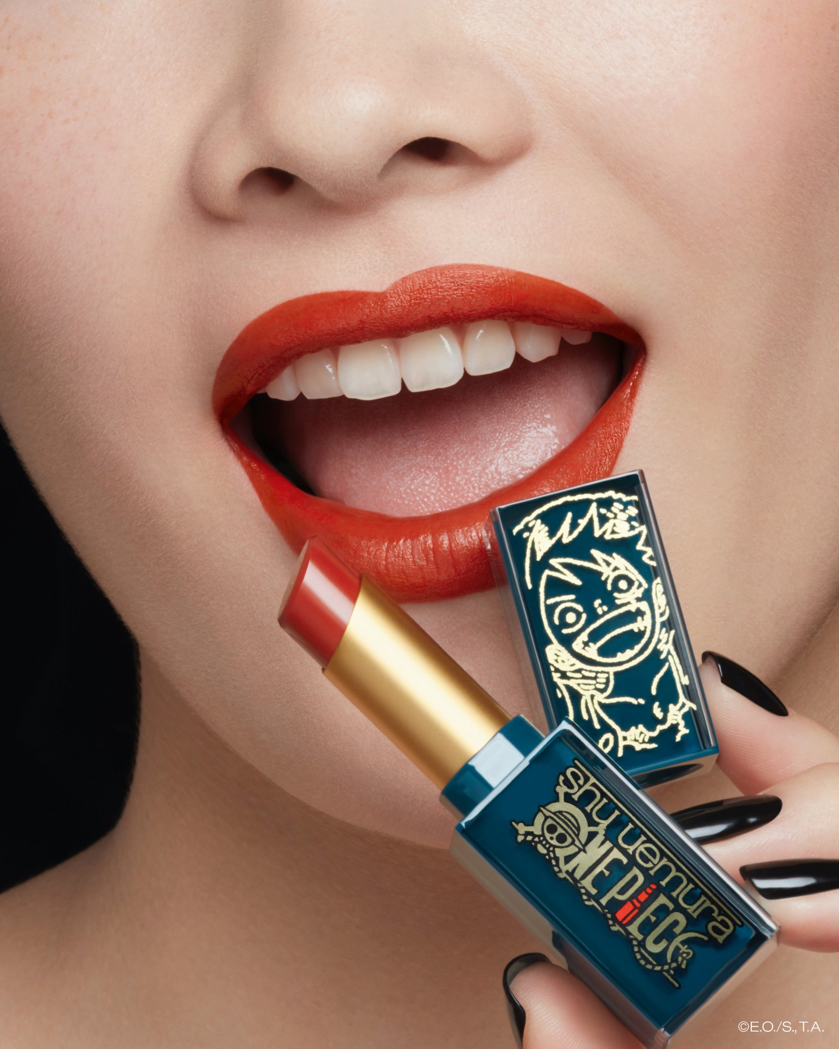 コラボでは、ワンピースの冒険の舞台であるマリンブルーの海や、太陽、財産などにインスパイアされたアイテムを展開。各アイテムにあしらわれたロゴは、ワンピースの「I」のスペルをシュウ ウエムラのアイコンリップ「ルージュ アンリミテッド」のイラストに置き換えたオリジナルデザインを採用した。