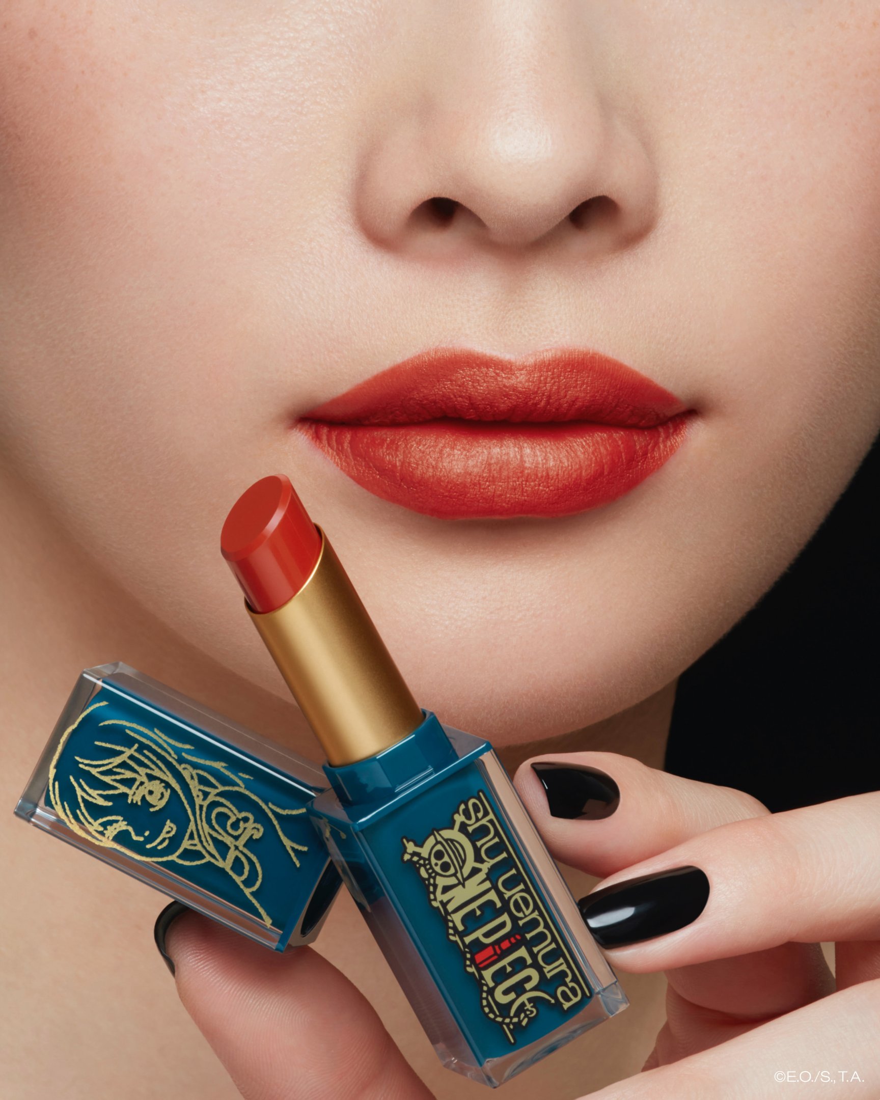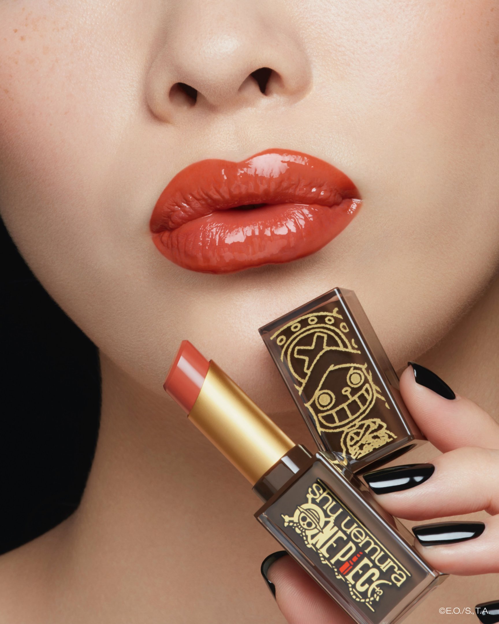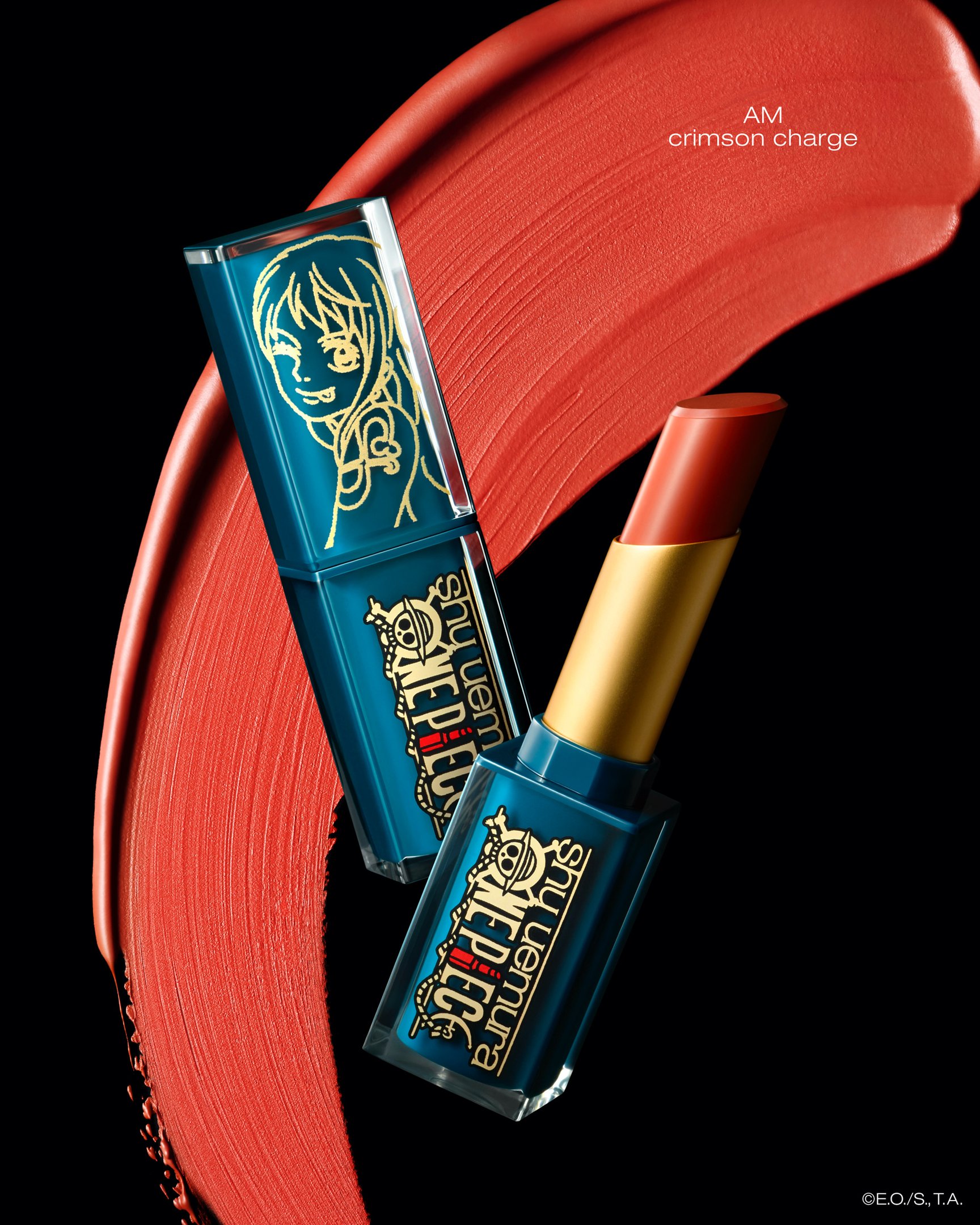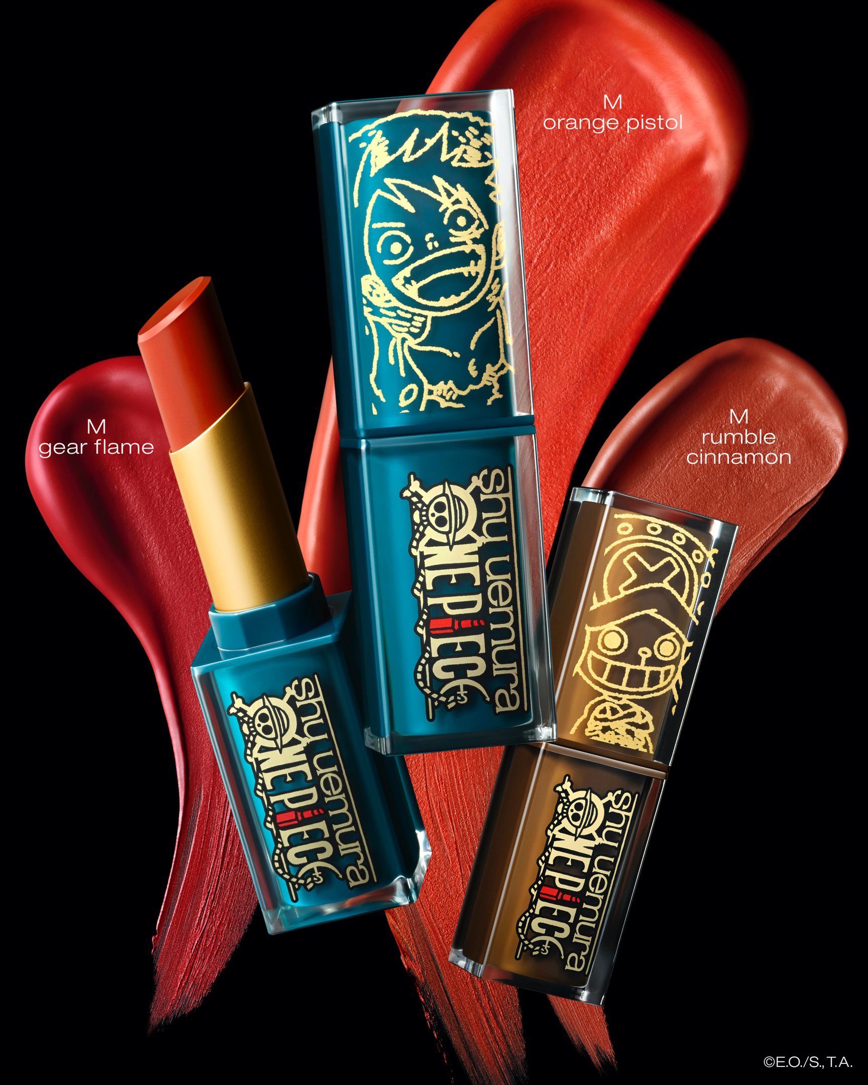 コラボでは、ワンピースの冒険の舞台であるマリンブルーの海や、太陽、財産などにインスパイアされたアイテムを展開。各アイテムにあしらわれたロゴは、ワンピースの「I」のスペルをシュウ ウエムラのアイコンリップ「ルージュ アンリミテッド」のイラストに置き換えたオリジナルデザインを採用した。