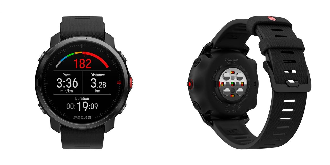 1982年に世界で初めて屋外トレーニング用心拍計モニター装置を開発した「Polar」だけあり、心拍数計測の精度に対するユーザーからの信頼は厚い。Polar Grit Xに採用されているのはPolar Precision Primeセンサー。グリーンとレッドにオレンジを加えた3色のLEDを計10個搭載したことで、血管の状態をより正確に把握できるようになったという。さらに、皮膚との接触状況を把握する電極センサー、手の動きで発生する誤差の補正を行う加速度センサーも搭載。新開発のアルゴリズムにより、心拍数計測の精度を高めることに成功した。