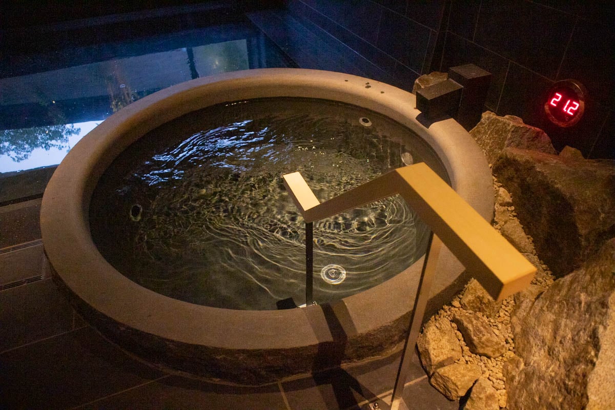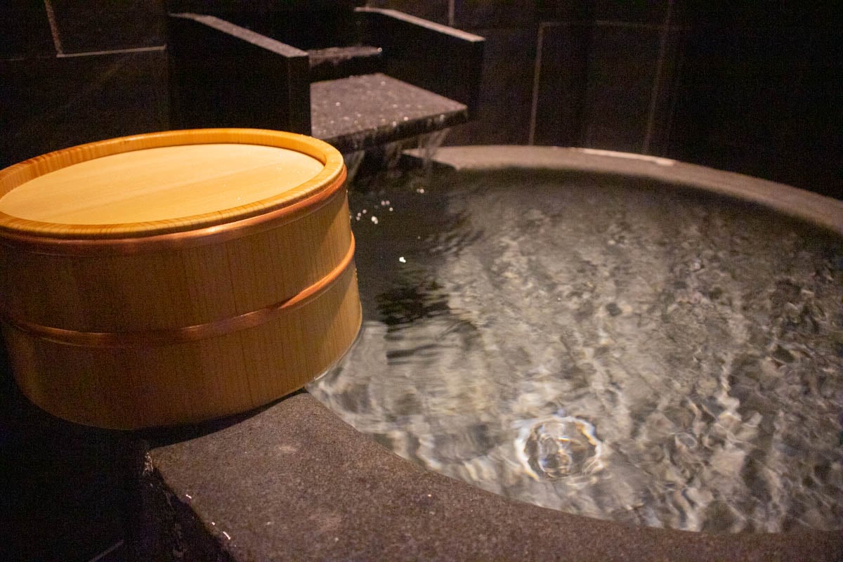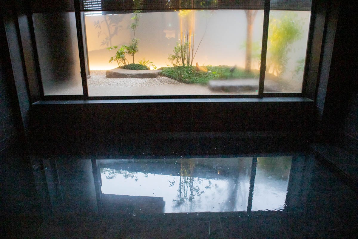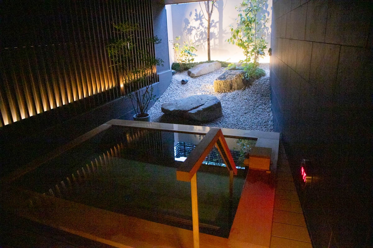 男女共通で、露天風呂には箱根にある「小田急 山のホテル」の自家源泉「芦ノ湖温泉 "つつじの湯"」を採用。富士山麓の湧水池「忍野八海」で録音した水の音を流し、リラックスできる空間を演出した。大浴場には中庭を設け、一部エリアのみ水が流れる環境音が聞こえる仕様で、外にいるような環境となっている。女湯のサウナはアーティストの和泉侃が調香した同館オリジナルのアロマを焚いたミストサウナで、男湯は一般的な乾式サウナを設置。男湯の水風呂の浴槽は御影石をくり抜いた特別なデザインとなっている。