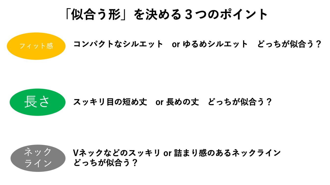 「似合う形」これを分解すると画像のような要素に分かれていきます。