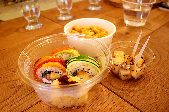 デリは店内での飲食も可能。メキシコの手巻き寿司「makis(マキス)」はカラフルな彩りと食材の組み合わせが楽しい