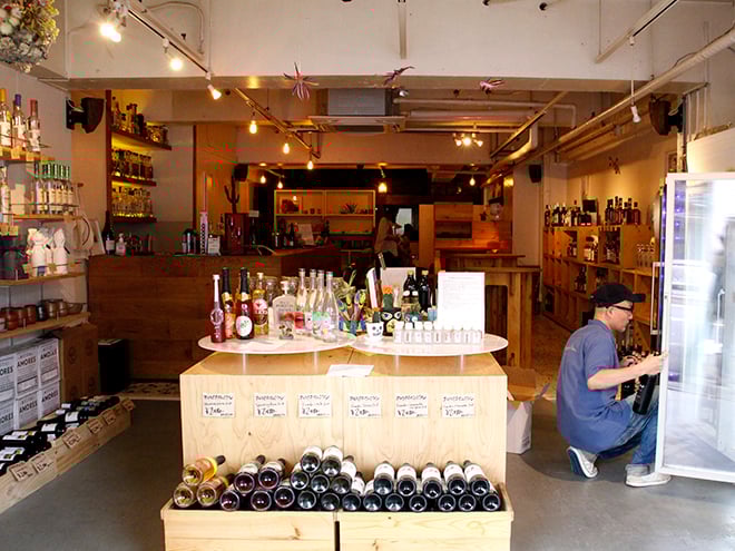 代表的な取り扱いブランドは、オーストラリア発ビオディナミ農法のオーガニックワイン「ロズネー」、伝統のオーガニック・ハンドクラフト製法で作るメスカル「アモーレス」(様々なアーティストが手がけるインパクトのあるラベルが楽しい<ベルデ モメント> が人気)、女性3人組の高品質メスカルメーカー「マリアフェリス」、メキシコチワワ州のソトル(蒸留酒)「コヨーテ」など。価格帯は1本3000円代~2万円程度で、多くは量り売りも可能だ。クラフトビールは日本の「ヨロッコビール」やスウェーデン「ブリュースキー」ほか60種以上。客単価は平均3,000-4,000円程度。