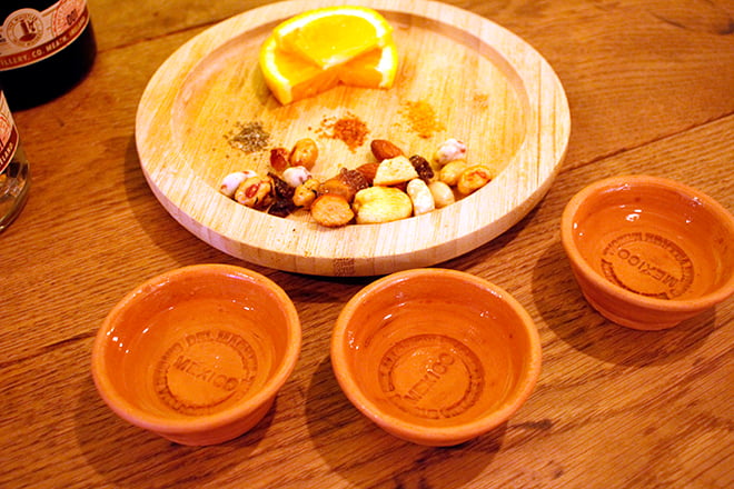 なかでも自社輸入の中心となるのが、日本未入荷を含め60種以上を揃えるメスカルだ。メスカルは多肉植物アガベを原料に造られるメキシコ伝統の蒸留酒で、テキーラの元祖と呼ばれるもの。テキーラとメスカルの違いは”工場生産”と”手作り”だという。