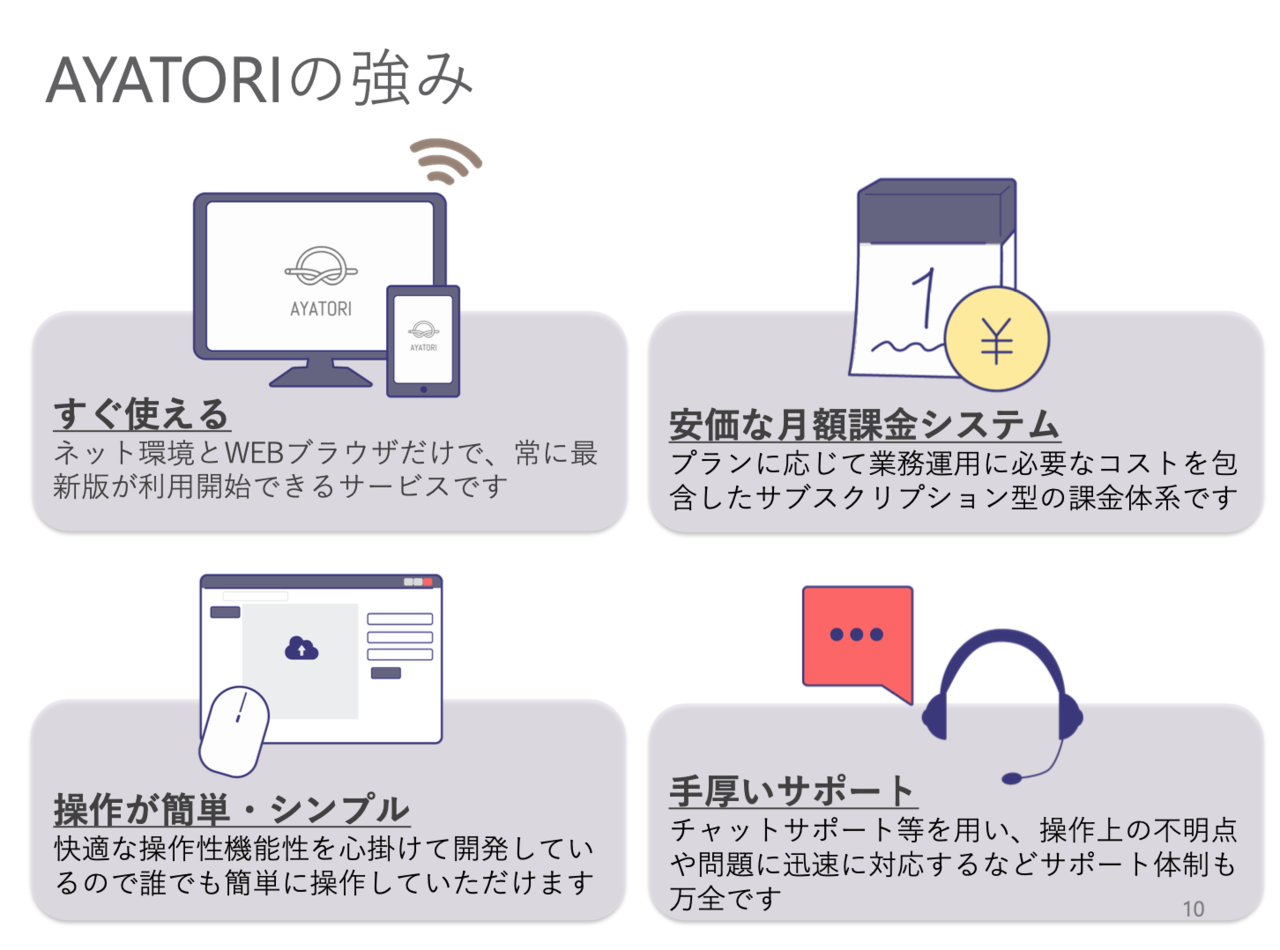 AYATORIは業務効率化ツールなので、いまのところ売上に直接繋がるツールではありません。どこにリプレースするかを考えた時に、労働時間の削減というより、原価率が0.1%下がりますというような見せ方の方が響きやすいんだろうなと思います。
