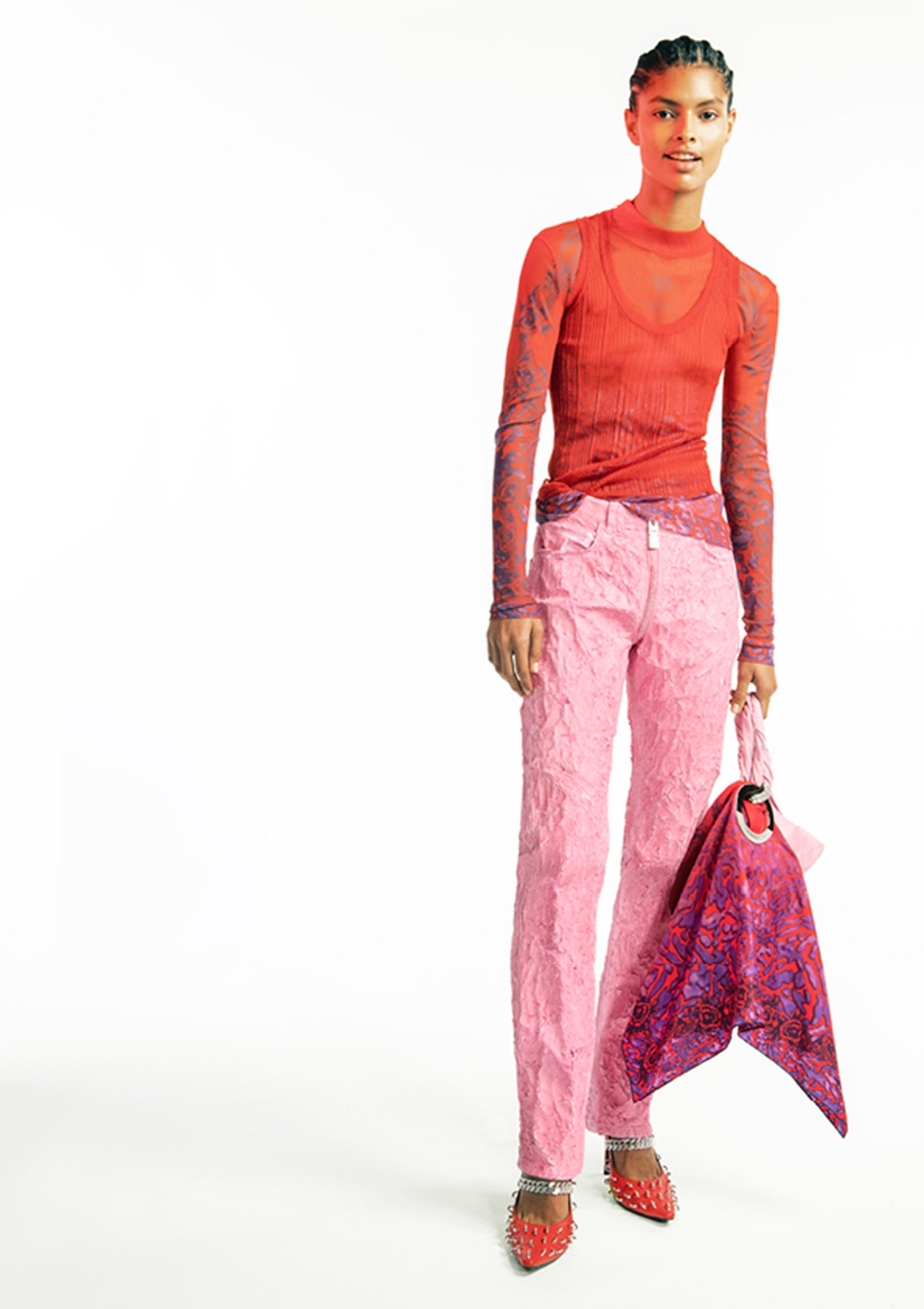 ウィリアムズの就任が発表されたのは今年6月。デビューコレクションはパンデミックの最中に制作をスタートし、2ヶ月で完成させたという。メゾンのキーとなるのは、エレガンスと遊び心、そして現実主義。クラシックとラディカルの対比など、ジバンシィの歴史やアーカイヴに着目し、過去・現在・未来を指し示している。
