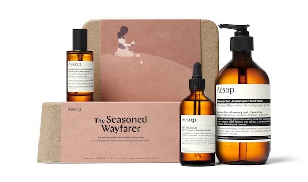 「シーズンド ウェイファラー」(税込1万1140円)は、イストロス アロマティック ルームスプレー、ポスト プー ドロップス、レスレクション ハンドウォッシュがセットになったギフトです。