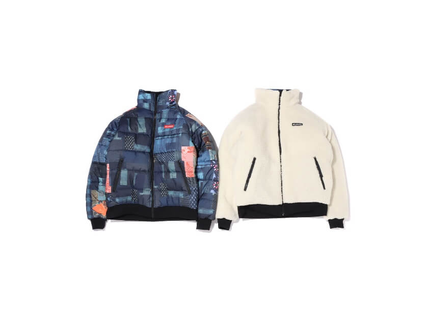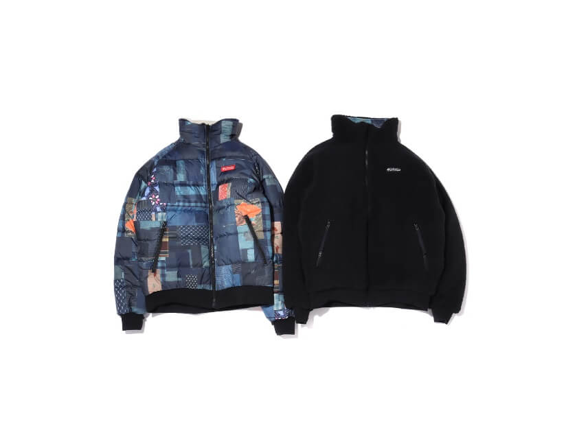 今回のコラボモチーフは、「アトモス」が実際に所有している藍染めや刺繍が美しいジャパンヴィンテージをパッチワーク風にアレンジした“ボロ(BORO)”柄をプリントで表現。街でもアウトドアでも映えるアイテムに仕上がっている。ロングスリーブTシャツ(5,900円+税)とリバーシブル フリースジャケット(2万2,000円+税)、パーカー(2万4,000円+税)の3型展開となっており、ロングスリーブTシャツは今回のコラボシンボルでもある“ボロ”をフロントにあしらい、紫外線カット機能と吸水速乾性を備えた。リバーシブル フリースジャケットは裏地に“ボロ”を取り入れ、リバーシブル仕様で気分に合わせてスタイルチェンジができる。ジャケットとインナーを連結できるインターチェンジシステムのライニングとしても活用できるのがポイントだ。パーカーは90年代にヒットしたパウダーケグ パーカーに“ボロ”を大胆に配置。フリースとの連結機能に加えて、雨や汚れを弾く撥水機能を備えるので快適な着心地をサポート。タウンユースだけでなくアウトドアでも活躍する一着になっている。