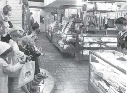 54年には高島屋東京(日本橋)店、東京(新宿)伊勢丹本店で催事「子供服展」を開催。消費者だけでなく、百貨店や業界関係者の関心を集めた。生産・販売面で管理体制が整い、56年には坂野通夫が社長に就任。数寄屋橋阪急に出店し、東京進出を果たす。