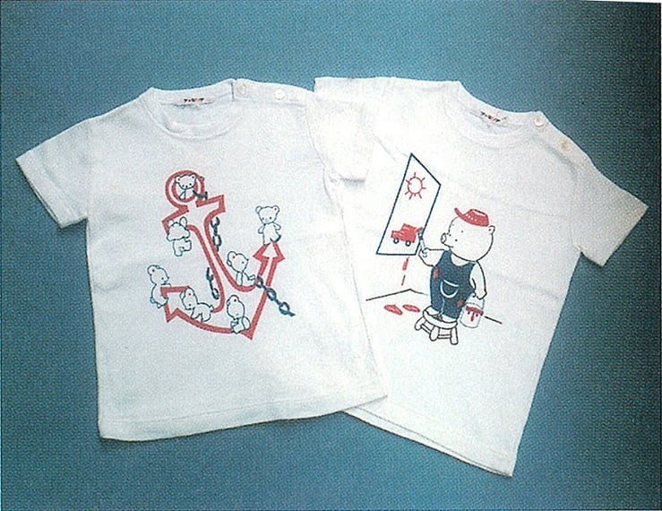 「子供のために」「お母さんの気持ちになって」という熱意は、様々な〝発明品〟を世に生み出した。縫い目を外側にした赤ちゃん用の肌着はもはや一般化したが、日本で初めて商品化したのはファミリアだ。オリジナルのキャラクター「ファミちゃん」をプリントしたTシャツは、それまで肌着としか見られていなかったT型のシャツを完全なアウトウェアとして提案した(57年)。