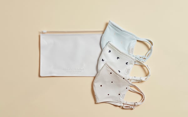 それぞれのマスクにはPVC(ポリ塩化ビニル)素材のオリジナルポーチも付いてきます。