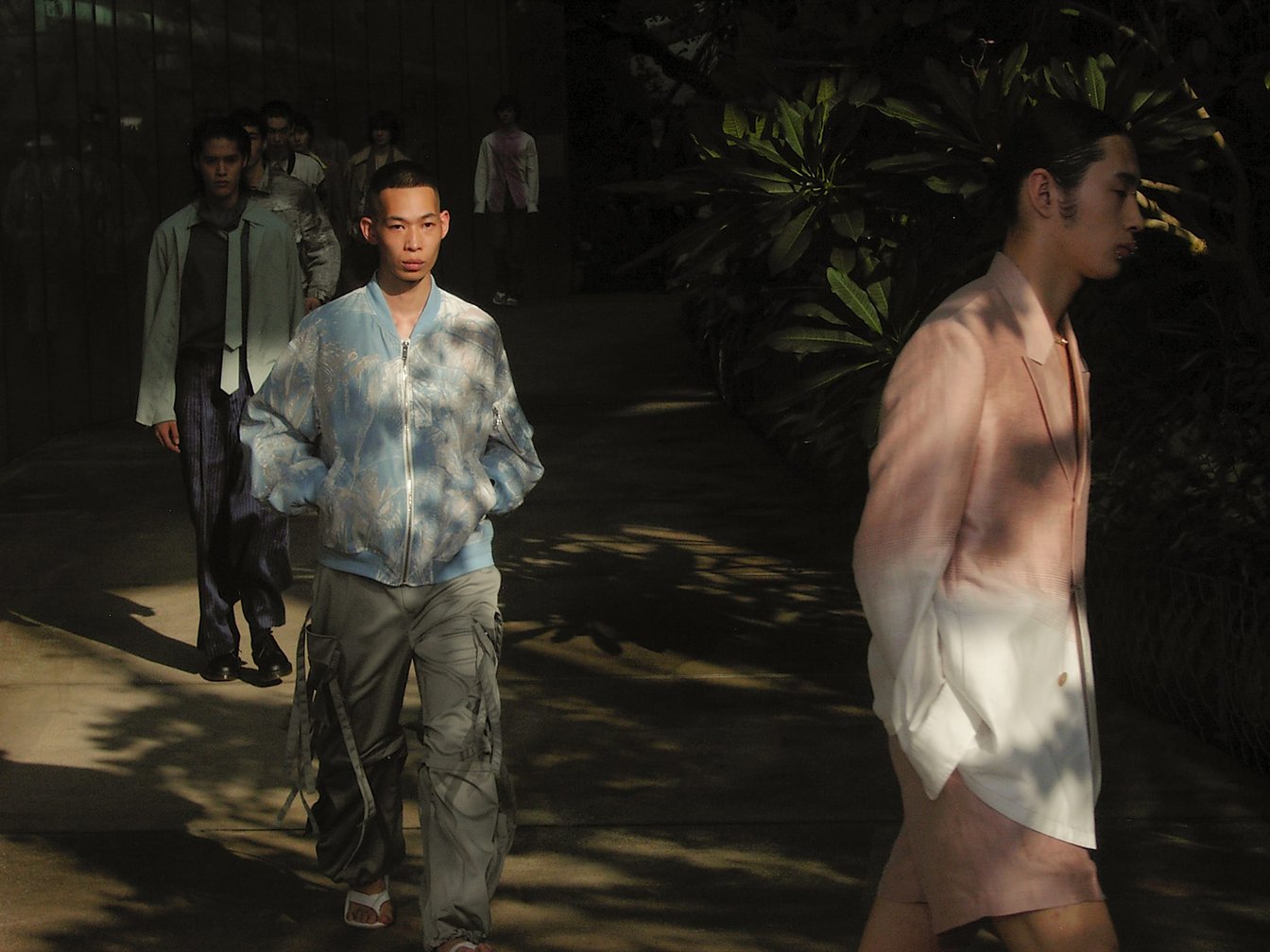 TAAKKは、新宿御苑の大木戸門から入った丘の上にある温室が会場。続々と集まった観客(通常よりははるかに少ないのだろうけど)が日を受けて丘を登っていく姿は、どこか象徴的だ。温室内の観覧用の通路がランウェイになり、その両側に観客はぽつぽつと立つ。乾いたパーカッションの音が鳴り響く中早足で登場するモデルたちの印象も悪くない。何よりもコレクションの内容―特に色調や繊細な素材感を確認するには、この近さが必要だと実感。植物が生い茂る中、ベストマッチなコレクションだったのではないかと、ここに居合わせた幸運を感じたものだ。