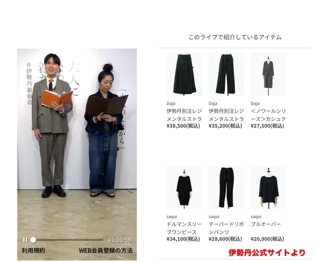 三越伊勢丹HDのライブコマースは、今年7月に実施された。三越松山店と日本橋三越を結んで、松山店のデジタルサロンに集まった顧客に対し、5台の大型モニターで日本橋店のスタッフがランバンコレクションの新作などを紹介。事前に松山店の外商部が顧客の要望を聞きいて日本橋店に伝え、同店が商品のピックアップやコーディネートを考えたとか。成約率が7割と良かったため、他の地方店にも導入を検討中だ。