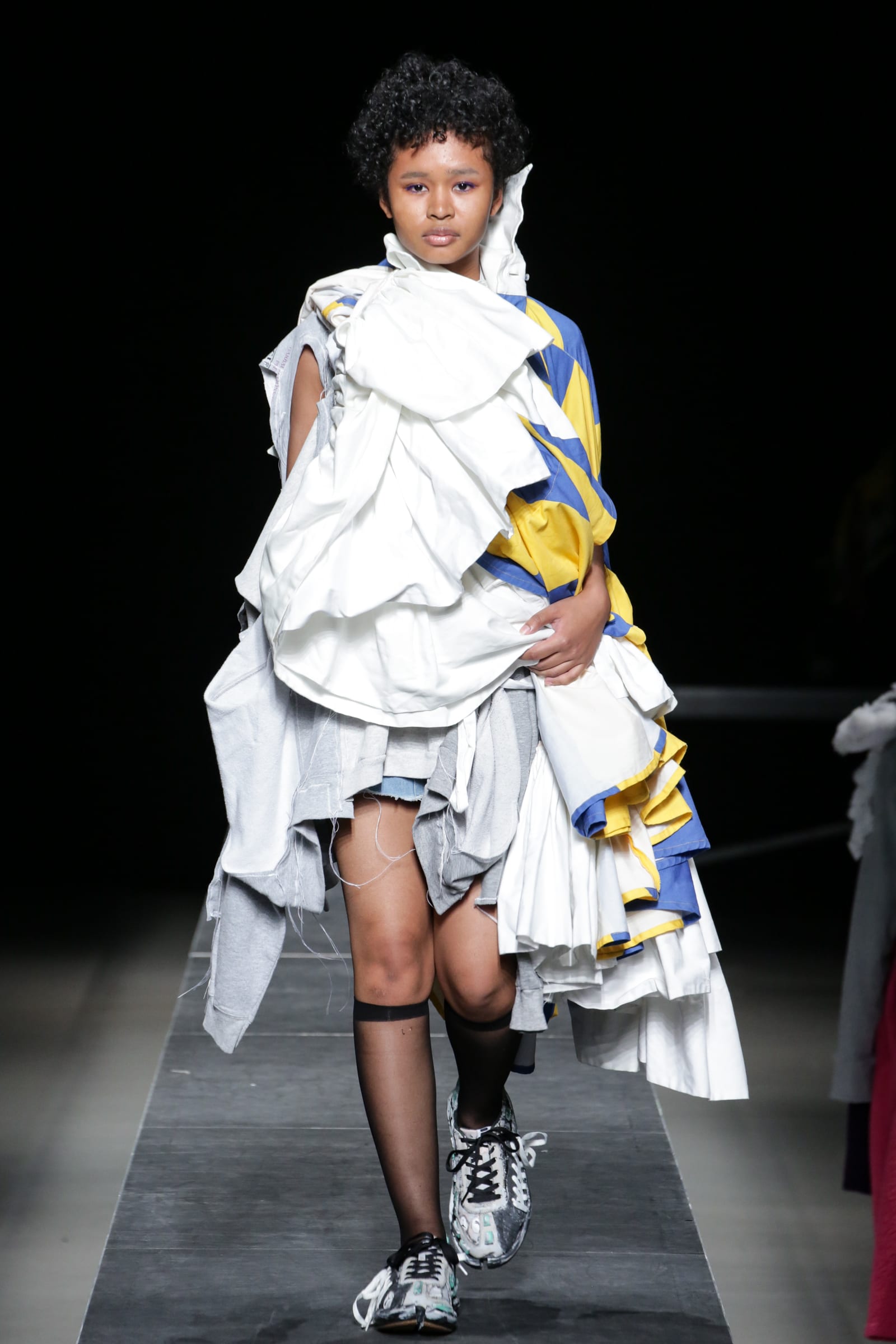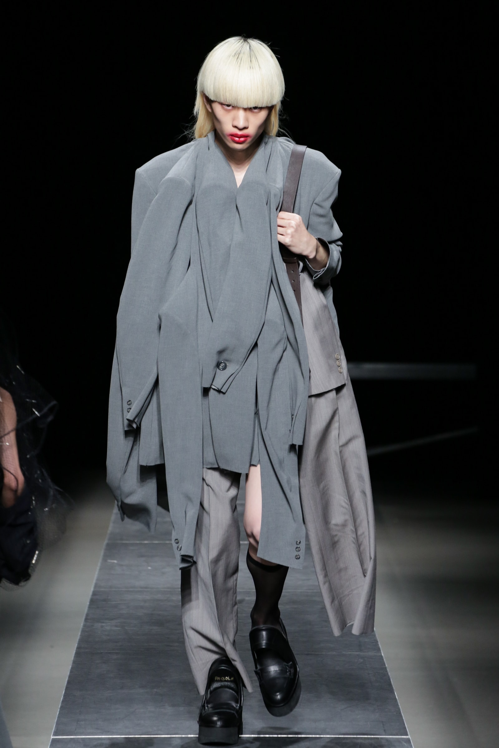 今シーズンは「Retrace」をテーマに掲げ、性別や時代、国籍、文化、風習、身体構造、経年変化といった装いにまつわる言語を再解釈した。ショーでは複数のジャケットを組み合わせたアウターや、大量のラガーシャツをドッキングしたドレス、様々なカラーのTシャツを重ねたトップスなど、全体的にボリュームのあるルックが目立った。土居は「イエール国際モードフェスティバルでヨーロッパの若手を見ていく中で、最も自分が表現したいものはオートクチュールだと感じた」とし、男性のためのオートクチュールを制作したという。