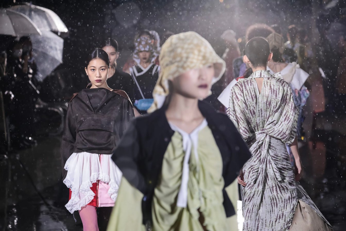 時節柄、手の仕事の大切さに注目していることは今回の連載中に幾度か触れている。素朴な線、温もりのある絵、不器用な形、武骨さを隠さない過程を曝け出した彼の真剣さに打たれたのである。主題に紐付くショーの概要をここで記すことは控えておく。一部の読者には必要な情報であることは承知しているけれど、そのあたりはプロのジャーナリストに任せておく。きっと私よりも巧く報道してくれるだろうから。またこう云うことを書くと周囲の顰蹙を買うのだけれど、こうした若いブランドについて語る場合は、細部の描写なぞは私には枝葉末節なことであり、端より発展途上の服の細部を穿つことなどにさして意味を感じてはいないのである。服が如何に破壊されようとも、よしんば悪化されようとも、そこに地息のようなものがあって、その中の虫のように、土居は、時空を超えた無国籍の東京を呼吸して生きているのだと思う。未熟だけれど、未熟だからこその真剣さに、私は少しく打たれたのである。