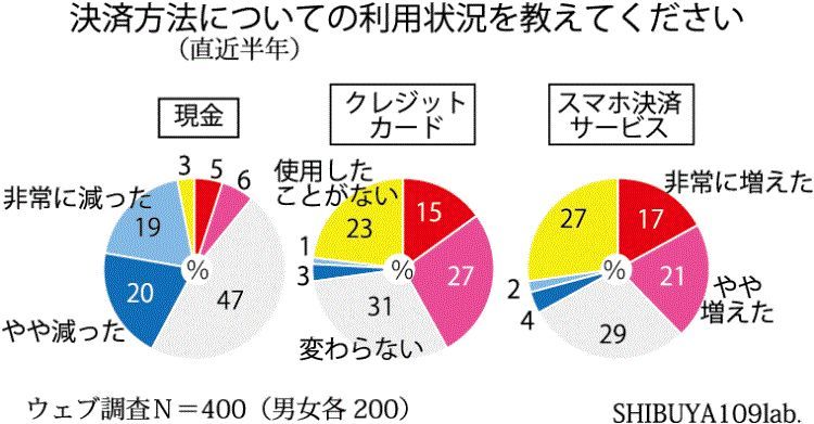そんな彼らでも、コロナ禍でキャッシュレス決済の利用が増加傾向にあります。同調査で、直近半年間での各種決済方法の利用頻度の増減について聞いてみたところ、クレジットカードやスマートフォン決済サービスの利用については、ともに「増えた」と回答した人がそれぞれ4割を占める結果となりました。