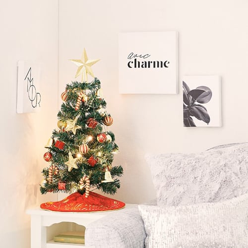 「クリスマスツリー スターターセット 60(税込5,000円)」は、高さ60cmの大きすぎないサイズ感が魅力のツリーとなっています。こちらはクリスマスの定番カラー“グリーン”のツリー。