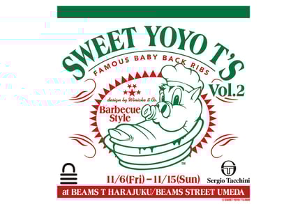 「BOWL HEAD inc」は、日本のハードコアシーンの要を担う音楽レーベル。一方の「Winiche&Co.」は、ストリートアートをバックボーンに持つブルックリン生まれのブランドだ。「SWEET YOYO T'S」は、そんな両レーベルの主宰者の深いリレーションシップと互いの偏愛を具現化するプロジェクト。昨年5月末に“架空のバーベキューレストラン”をテーマにしたポップアップをBEAMS Tで開催し、大きな反響を呼んだ。
