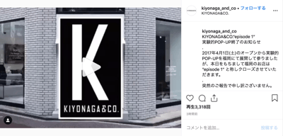 キヨナガアンドコーは2017年4月に福岡市中央区赤坂に路面店舗をオープンし、2019年4月まで約2年間にわたり営業。「そこでしか買えない」をコンセプトに実験的実店舗として展開した。