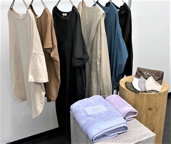 カジュアル服メーカーのコイズミクロージングは、抗ウイルス、抗菌、防臭、抗アレルギー加工「クリセラ」を施したアパレル・雑貨の「ハグアス」を主に専門店に向け販売する。トップ、マスク、タオル、エコバッグなど。マスクは12月から、それ以外は3月から販売する。