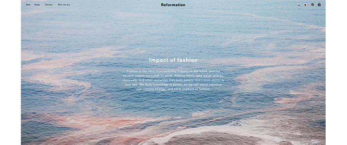 Reformationは2009年に”サステナビリティー”をブランドアイデンティティに生まれたファッションブランドである。以前もファッションブランドを立ち上げたことがあるという創業者は自身のビジネスが与える環境への悪影響を身をもって知り、この問題を解決するようなブランドを作りたいと考えたという。