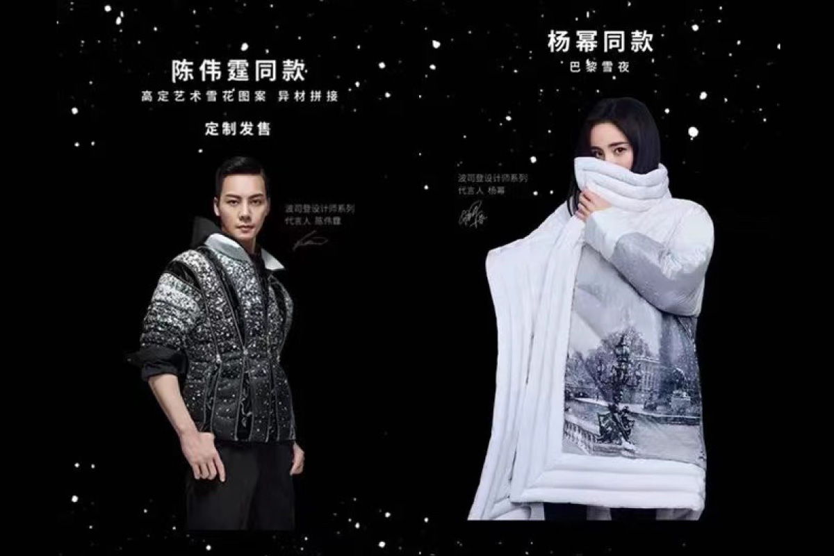 その中で、ファッション分野での影響力が強く、メンズファッションカテゴリでもUNIQLOに次ぐ上位売上と報道された中国ブランドが波司登(Bosideng)だ。昨年2019年、ダブルイレブン(独身の日)オンラインの売上は8億元(120億円以上)に達し、オフラインも含めた全販売チャネルでの売上は10億元(150億円以上)を突破した。