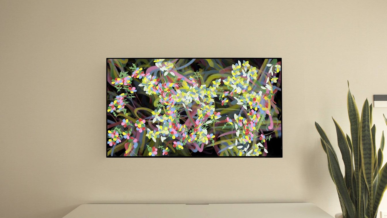 平面に描いた花が立体的に再現され、次々に咲く花と散りゆく花のゆったりとした動きは癒やしを与えてくれるだろう。