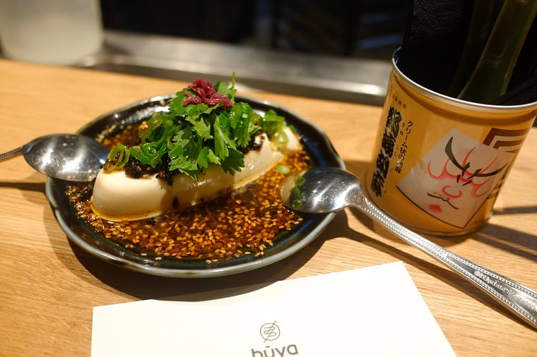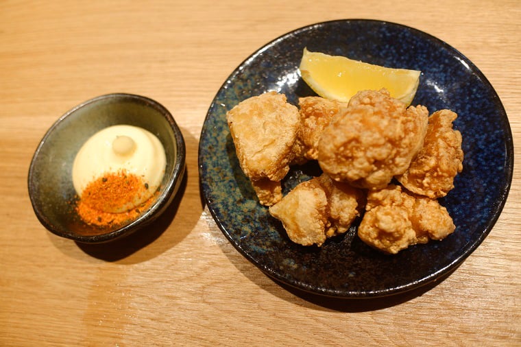 ヴィーガン、ベジタリアン向けのおつまみメニューも提供している。個人的にもお気に入りメニュー”豆腐の唐揚げ”(右)